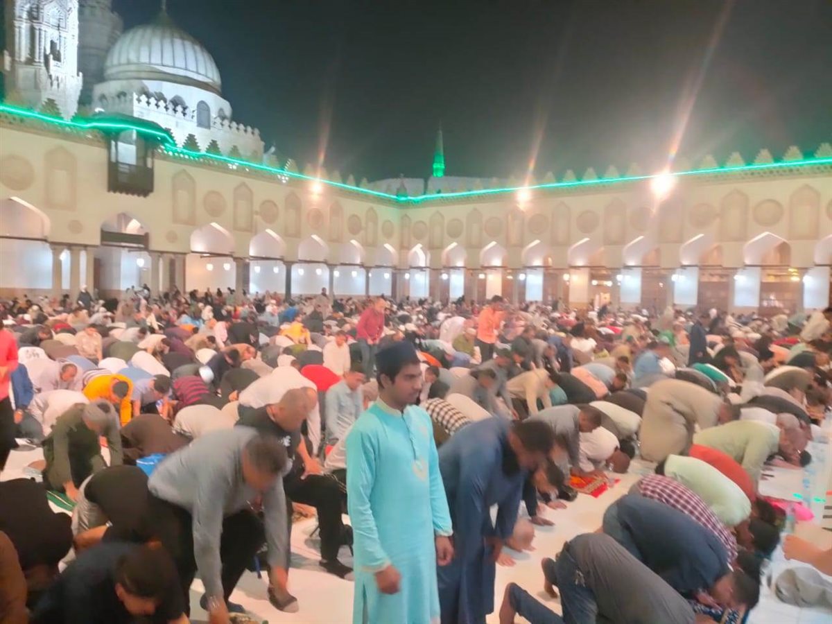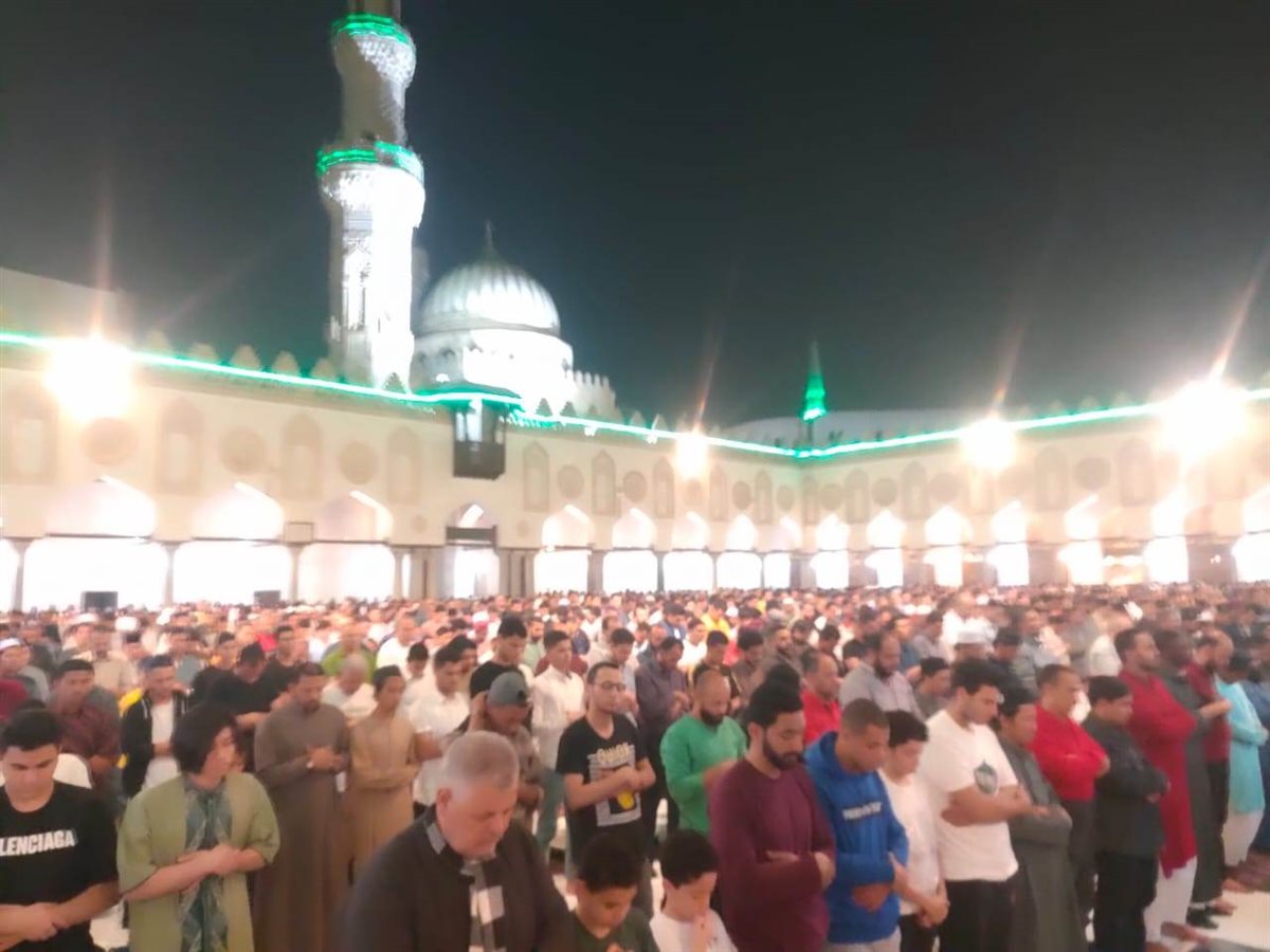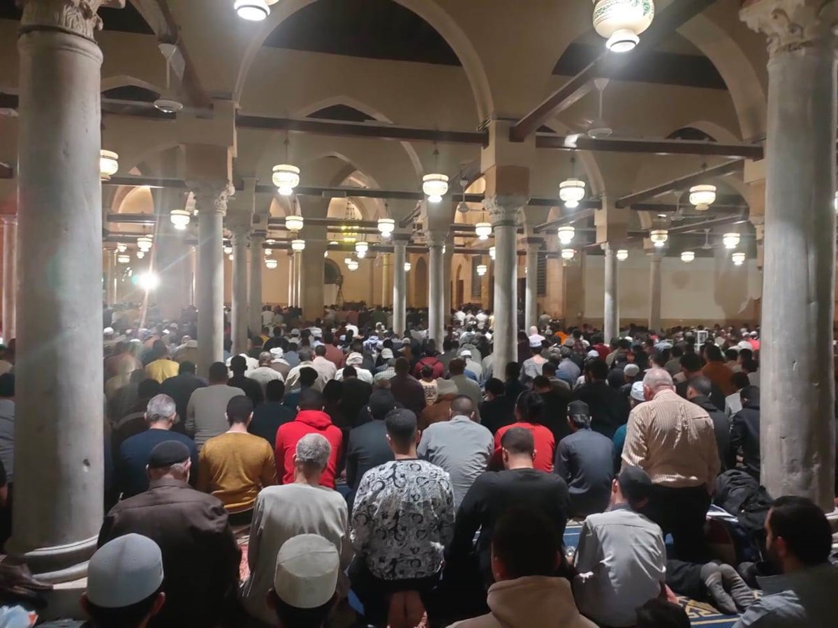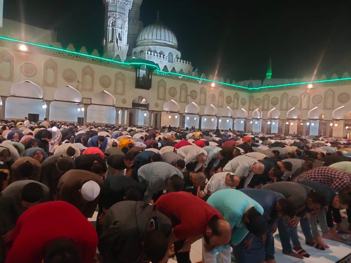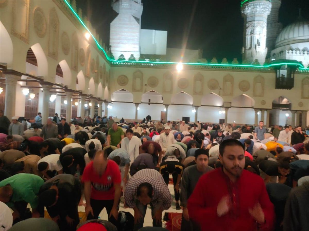 يؤدي آلاف المصلين في الجامع الأزهر صلاتي العشاء والتراويح خاشعين لله في الليلة السادسة والعشرين من رمضان، حيث امتلأت صفوف المسجد بالمصلين الذين جاءوا لإحياء الليالي العشر الأخيرة من رمضان والتقرب الله وبذل الطاعات والعبادات.