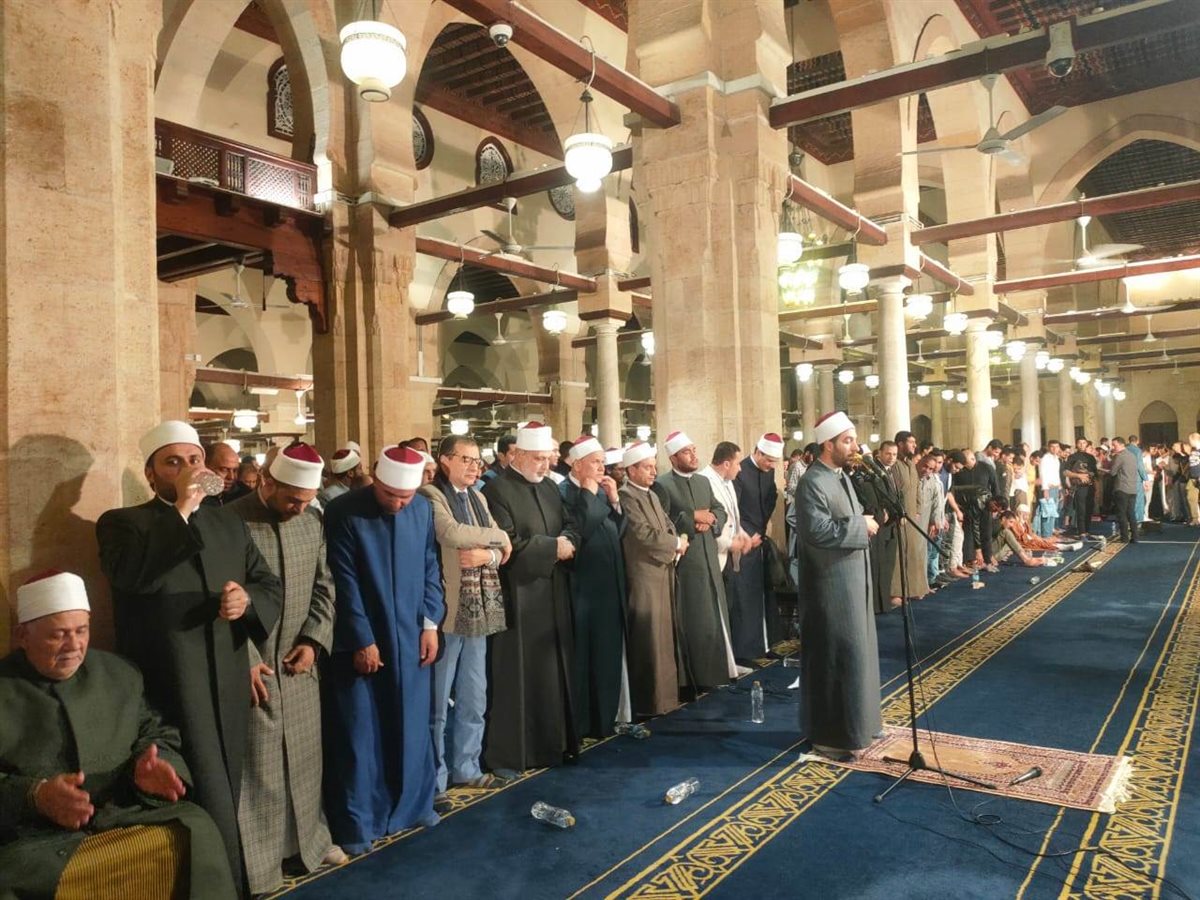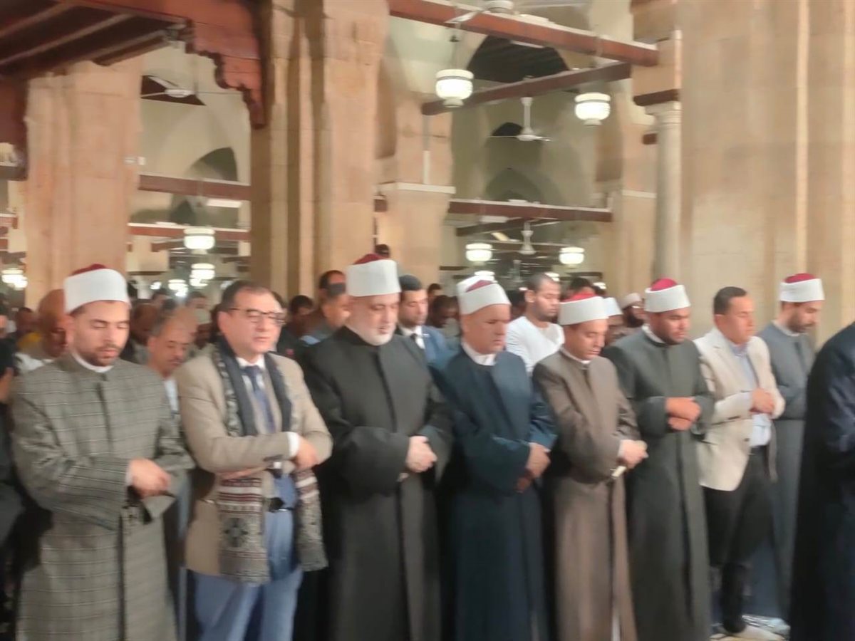وتقدم المصلون فضيلة الدكتور محمد الضويني وكيل الأزهر، ونخبة من علماء وقيادات الأزهر الشريف، ونقلتها عدد من القنوات الفضائية وإذاعة القرآن الكريم.