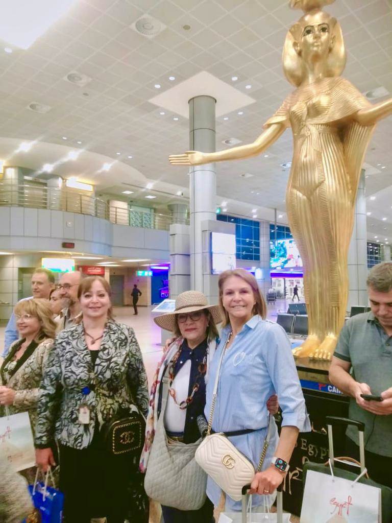بعد اختيار المقصد السياحي المصري ليكون الوجهة السياحية لرحلة النادي الدولي للسيدات بدولة اليونان لقضاء الإجازة السنوية لأعضائه هذا العام، وصل مساء أمس إلى مطار القاهرة الدولي وفد رفيع المستوى من أعضاء النادي، وكان في استقبالهم الأستاذة نسرين عثمانلي مدير مكاتب الهيئة المصرية العامة للتنشيط السياحي بمطار القاهرة الدولي وعدد من أعضاء المكاتب، حيث تم الترحيب بالوفد وتقديم باقات الورود والهدايا التذكارية والنشرات والمواد الدعائية عن المقصد السياحي المصري.