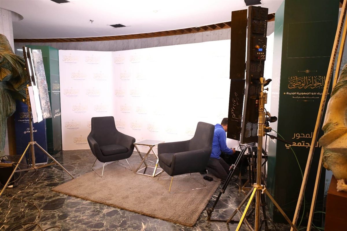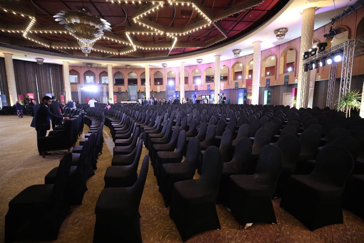 بالصور.. استعدادات انطلاق جلسات الحوار الوطني بقاعة مؤتمرات أرض المعارض
