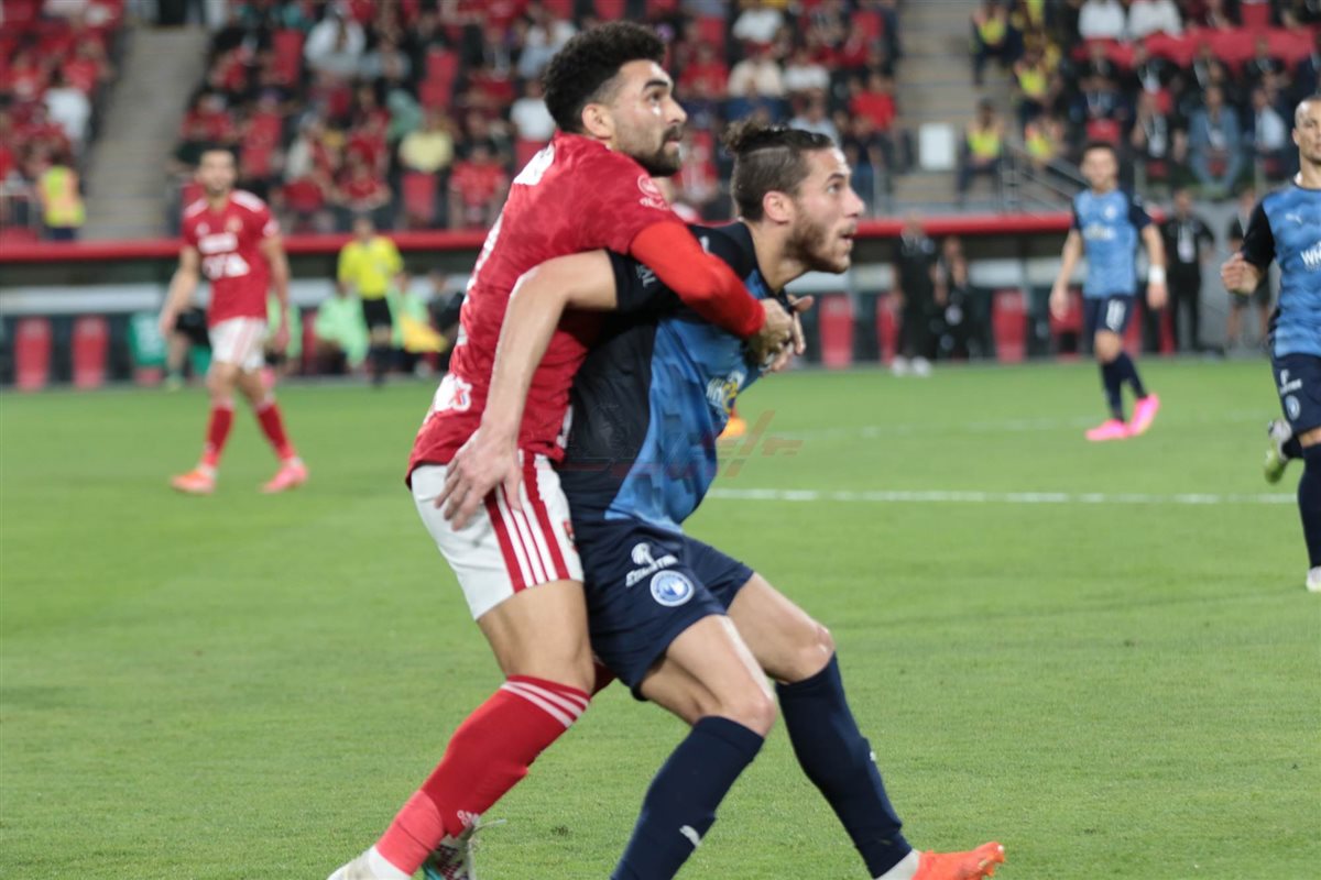 بعد مرور ربع ساعة، يظهر ييراميدز في الشق الهجومي وينجح محمد الشناوي في التصدي لتصويبة قوية من أحمد توفيق، وترتد الكرة ويبعدها الدفاع من أمام مصطفى فتحي، ويواصل لاعبو الفريق الدفاع بقوة وثبات، حيث ينجح حمدي فتحي في التصدي بقدمه لتصويبة الكرتي من داخل منطقة الجزاء. محاولات مستمرة من الفريقين للسيطرة على مجريات المباراة، وظهور متبادل داخل منطقتي الجزاء، ويطلق مصطفى فتحي تصويبة في الدقيقة ٢٩ تصطدم بلاعبي الأهلي وتمر إلى ركنية تنفذ بدون خطورة. يستعيد الأهلي زمام المبادرة الهجومية من خلال تصويبة قوية لقندوسي من أمام منطقة الجزاء تصطدم بيد مدافع بيراميدز، ويحصل الفريق على ضربة حرة نفذها معلول مباشرة في المرمى، ويحولها أحمد الشناوي إلى ضربة ركنية نفذها معلول لكن لم تستغل.