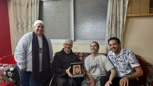 وقام الأب بطرس بإهدائه القرآن الكريم بداخل علبة مُطَعّمة بالصدف منقوش عليها أسماء الله الحسنى، داعياً له بأن ينال الشفاء من الله سريعاً ليعاود نشاطه الفني، ويُمتّع جمهوره بفنه الراقي.