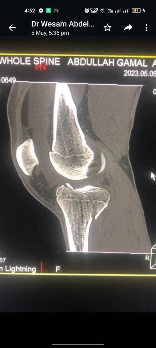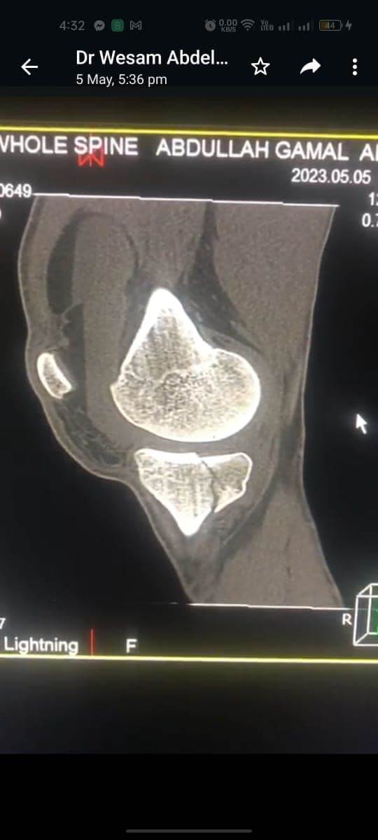 جراحة تثبيت داخلي لكسر متهتك بسطح مفصل الركبة بمستشفى بئر العبد