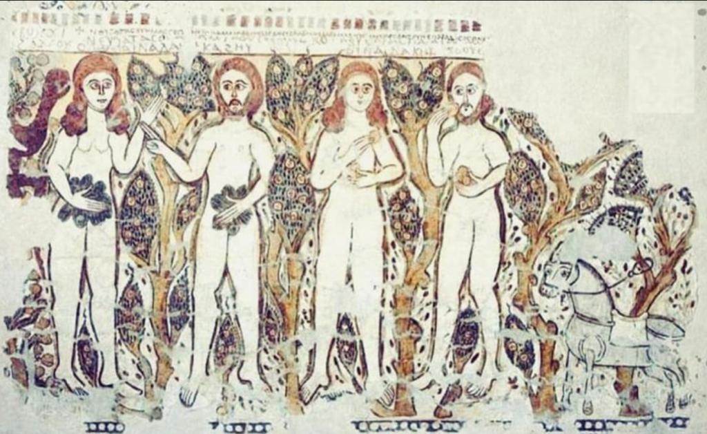 المتحف القبطي: يعرض جدارية ترجع للفترة مابين القرن 10 - 11 الميلادي، مصنوعة من الجص بها منظرين على اليمين واليسار يصوران آدم وحواء مرة وفي يديهما الفاكهة المحرمة، ومرة أخرى بعد خروجهما من الجنة.