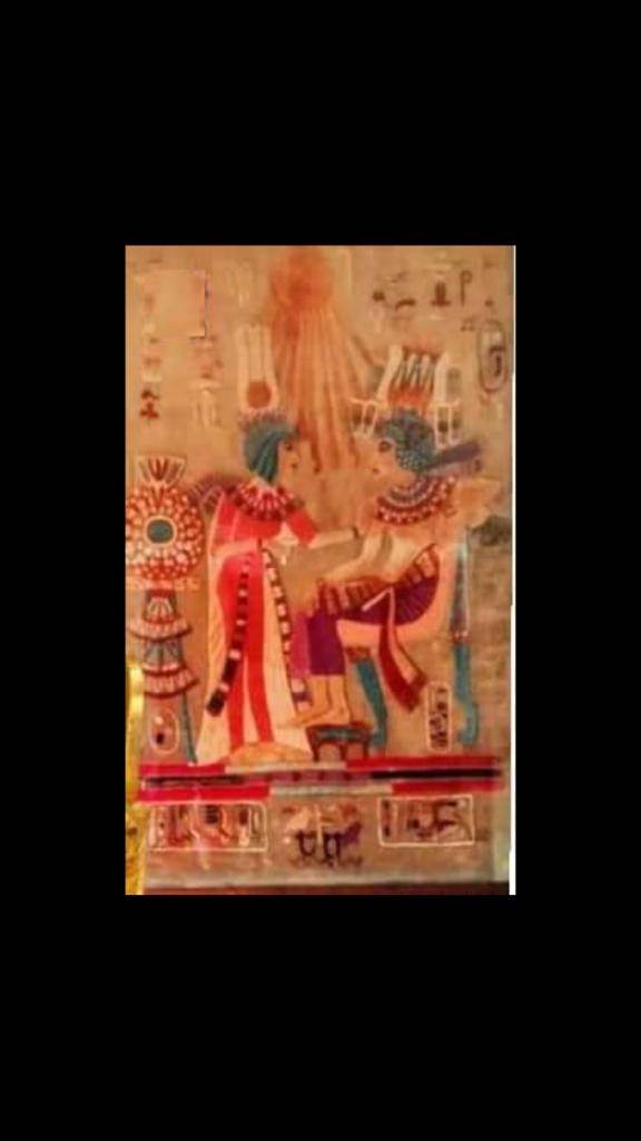 وفي أقصى اليسار رسمت الحية التي كانت أداة الشيطان. متحف شرم الشيخ: يعرض لوحة من الحجر الجيري، نقش عليها الملك أخناتون يقدم العطايا ويتعبد مع عائلته لآتون على هيئة الأشعة المنبثقة من قرص الشمس.