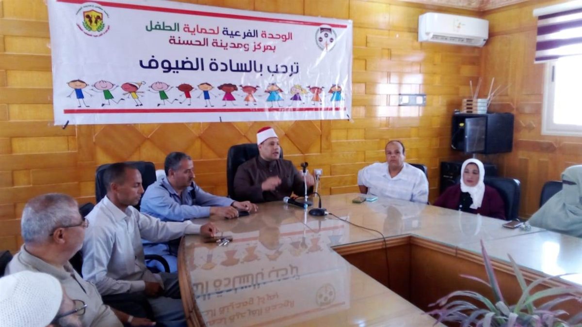 وعلى صعيد آخر .. نظمت الوحدة الفرعية لحماية الطفل بالحسنة ندوة توعوية أخرى عن المشاكل الأسرية ضمن مبادرة: "إحمى ولادك" ، وذلك بحضور محمود الشريف رئيس الوحدة الفرعية لحماية الطفل بالحسنة وأعضاء اللجنة الفرعية من ممثلى التربية والتعليم والتضامن الاجتماعى والصحة والأوقاف وعدد من الأسر والشباب بمدينة الحسنة.. حيث أوضح رئيس اللجنة الفرعية بأن الهدف من تنظيم تلك الندوات التثقيفية والتوعوية هو نشر الوعى لدى النشء والشباب بأهمية دور الأسرة بأعتبارها اللبنة الأولى في بناء المجتمع وأساس نهضته ورقية.. لافتا إلى أن الندوة ناقشت مخاطر الخلافات الأسرية وما يرتبط بها من مشكلات، وتضمنت عدة محاور لتوضيح المشاكل الأسرية، وهى أسباب الخلافات وكيفية التغلب عليها وأساليب إحتوائها، وكذلك أنواع الاختلاف وكيفية معالجته.. بالإضافة إلى توعية الطلاب والشباب بدور الأسرة في بناء القيم والأنماط السلوكية وتربية الأبناء تربية سليمة على الأخلاق والتقوى لخدمة المجتمع والوطن.