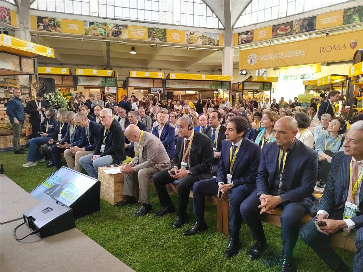 وبدأت مراسم الجمعية العمومية بكلمة ترحيب من رئيس اتحاد الزراعة الإيطالي عقبه كلمة للرئيس المنتخب الجديد لاتحاد التحالف العالمي لأسواق المزارعين وكلمة للمفوض السامي للحكومة الإيطالية للأمن الغذائي الذي قام بزيارة مصر في الفترة الماضية ثم رئيس اتحاد أسواق الجملة الإيطالي وسوف تستكمل خلال اليومين القادمين لقاءات مع الجهات المعنية في هذا الشأن الى جانب لقاءات مع الشركات التي ستبدأ في الاستثمار في مصر.