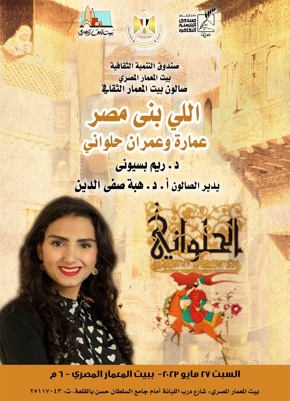 وفى السادسة مساء نفس اليوم يستضيف بيت المعمار المصري د. ريم بسيونى ولقاء جديد من صالون "اللى بنى مصر" حول عمارة وعمران الدولة الفاطمية، يدير الصالون ا.د. هبة صفى الدين.