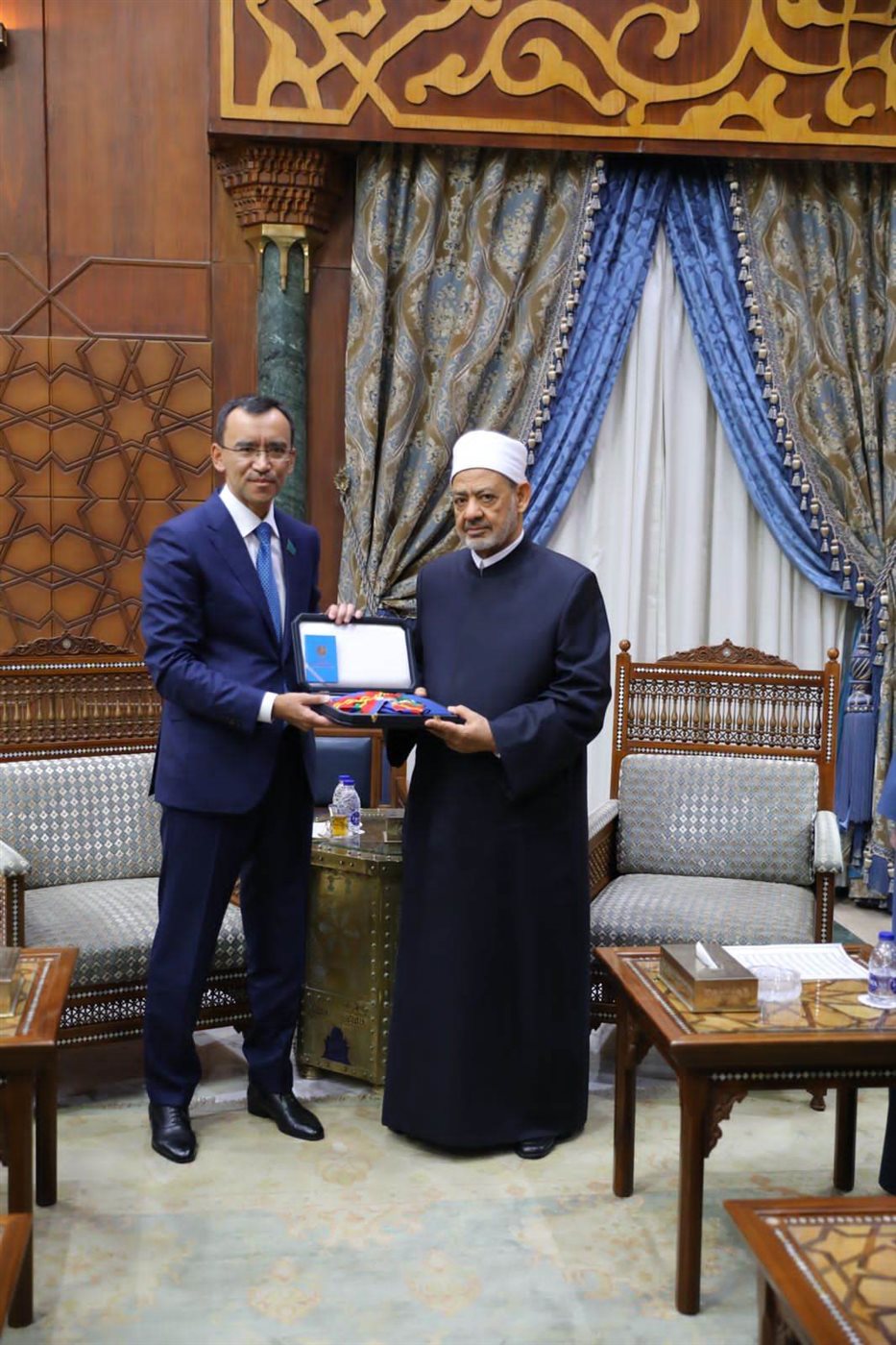 وأكد فضيلته اعتزاز الأزهر بعلاقاته مع كازاخستان، والتي ترسخت عبر التاريخ، مشيرا إلى أنه لدينا في الأزهر ١٦٢ طالبا كازاخيا يتلقون تعليمهم في مختلف المراحل التعليمية في الأزهر الشريف من رياض الأطفال وحتى مرحلة الدراسات العليا، إضافة إلى استضافة أكاديمية الأزهر العالمية لتدريب الأئمة لأئمة كازاخستان بشكل دوري. جدير بالذكر أن العلاقات بين الأزهر وكازاخستان تمتد لأكثر من ٣٠ عاما، وشهدت العلاقة بين الأزهر وكازاخستان نشاطا علميا وثقافيا وتعليميا مكثفا، حيث قدم الأزهر الشريف للطلاب الكازاخيين العديد من المنح التعليمية في المعاهد الأزهرية وجامعة الأزهر، كما أوفد الأزهر أساتذته للتدريس في الجامعات الكازاخية وعلى رأسها جامعة نور مبارك.