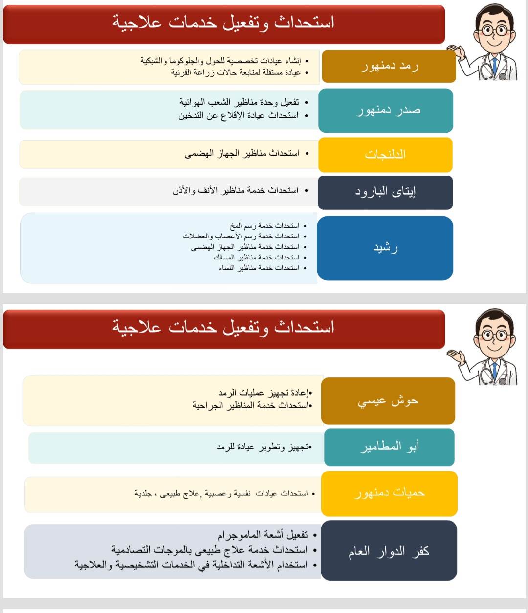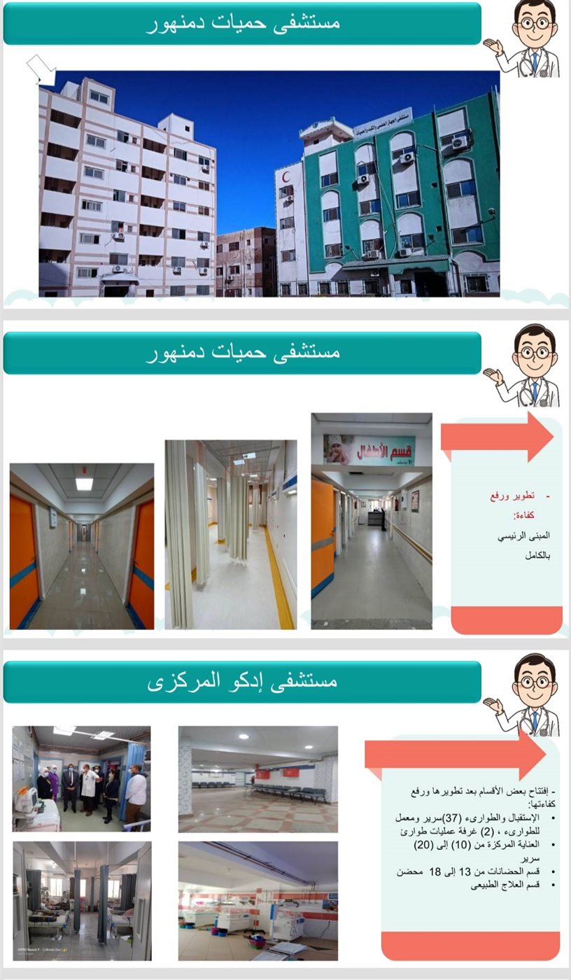 وشهدت محافظة البحيرة ثورة غير مسبوقة تم خلالها تحقيق تطوير شامل في كافة مناحي الحياة خاصة في قطاع الصحة بالتنسيق بين كافة الوزارات والهيئات والأجهزة التنفيذية للعمل على الارتقاء بمنظومة الرعاية الصحية وتوفير الخدمات الصحية المتكاملة للمواطنين من خلال تطوير ورفع كفاءة المستشفيات العامة والمركزية والتوسع في إنشاء المراكز الطبية المتميزة.