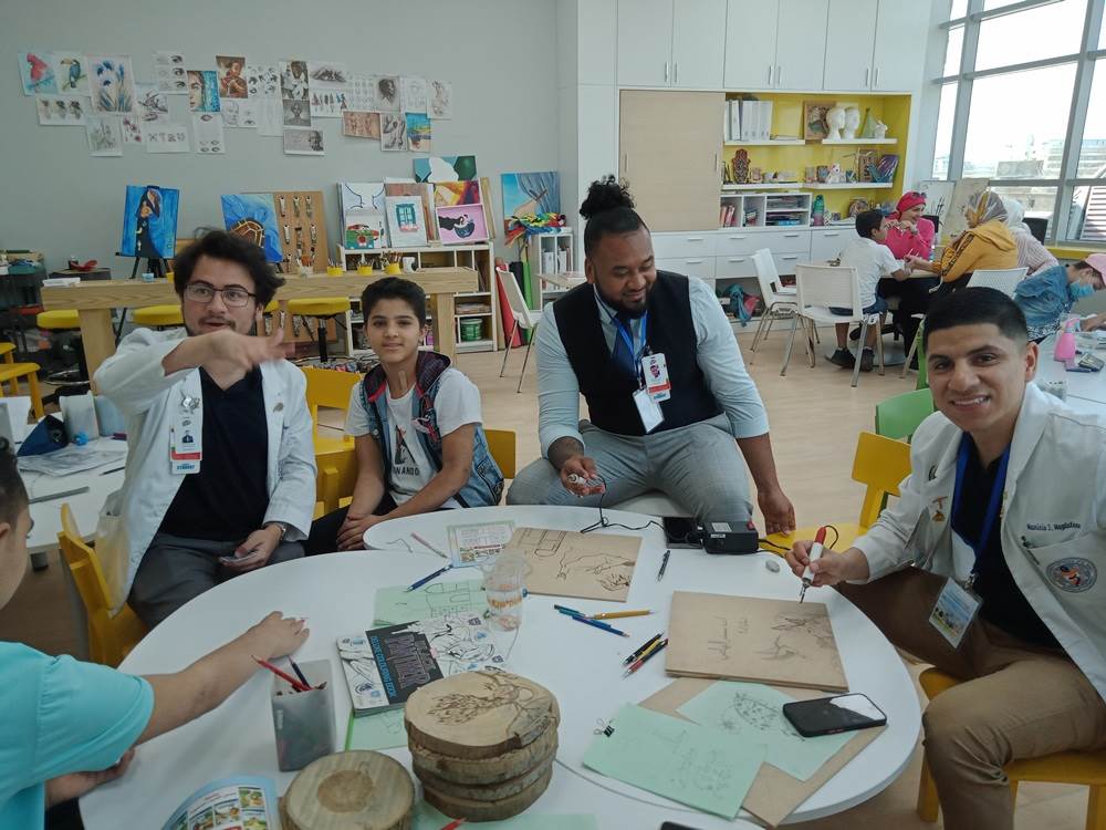 وشاركوا في الجانب التطوعي بالمستشفى كنوع من التضامن مع أطفال 57357، من خلال مركز الإبداع الفني والرسم الموسيقى والمشغولات اليدوية.