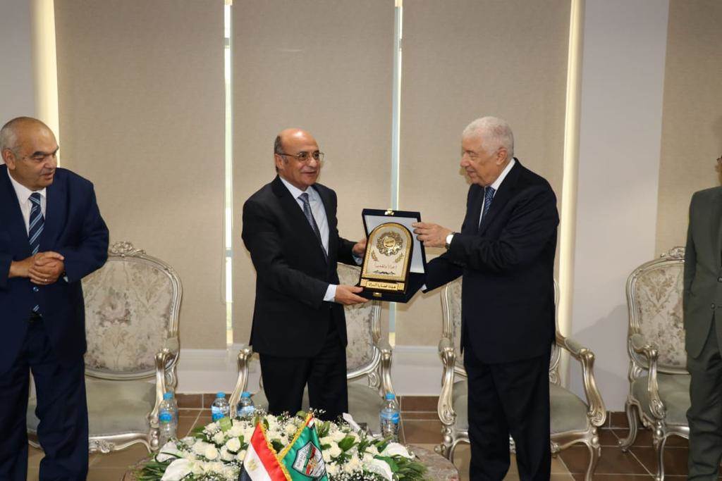 كما كرم المستشار محمد بكر رئيس الهيئة المستشار حسين مصطفى رئيس الهيئة السابق وسلم سيادته درع الهيئة تقديرًا لما قدمه للهيئة إبان فترة توليه رئاستها.