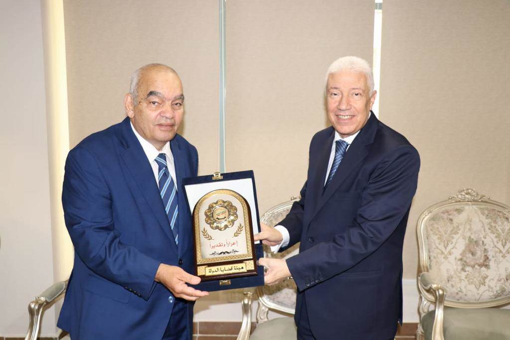 كما تبادل الطرفان الدروع التذكارية تعبيرًا عن التقدير المتبادل بينهما، حضر الحفل: المستشار حسين مصطفى رئيس الهيئة السابق والسادة المستشارون نواب رئيس الهيئة اعضاء المجلس الاعلى للهيئة والمستشارون نواب رئيس الهيئة الآتي أسماؤهم: المستشار سامي محمدي رئيس قطاع الإدارية العليا المستشار خالد زين رئيس مجلس إدارة نادي مستشاري قضايا الدولة والمستشار احمد فكري أمين عام الهيئة والمستشار عبد العال جرنة رئيس إدارة التفتيش الفني والمستشار هاني محمد على رئيس المكتب الفني والمستشارون الامناء العامون المساعدون: المستشار محمد فهمي المستشار إيهاب سعيد المستشار مروان الحداد والمستشارون نواب رئيس الهيئة: المستشار زين الهواري منسق عام القطاع المستشار سامح سيد محمد المتحدث الرسمي للهيئة.