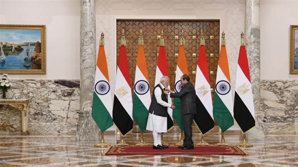 قام الرئيس عبدالفتاح السيسي، رئيس الجمهورية، بتقليد ناريندرا مودي رئيس الوزراء الهندي بقلادة النيل، التي تمثل أرفع الأوسمة المصرية، وأعظمها شأناً وقدراً.