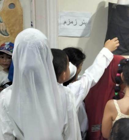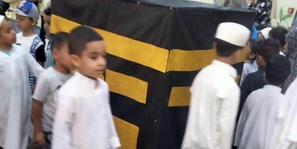 وأقيمت الاحتفالات بمشاركة الأطفال، في محاكاة لشعائر الحج وتعليمها لهم، وذلك بالطواف حول مجسم للكعبة الشريفة، والسعي بين الصفا والمروة، والوقوف بجبل عرفات، ورمي الجمرات، وذلك وسط سماعهم لترديد تكبيرات الحج.