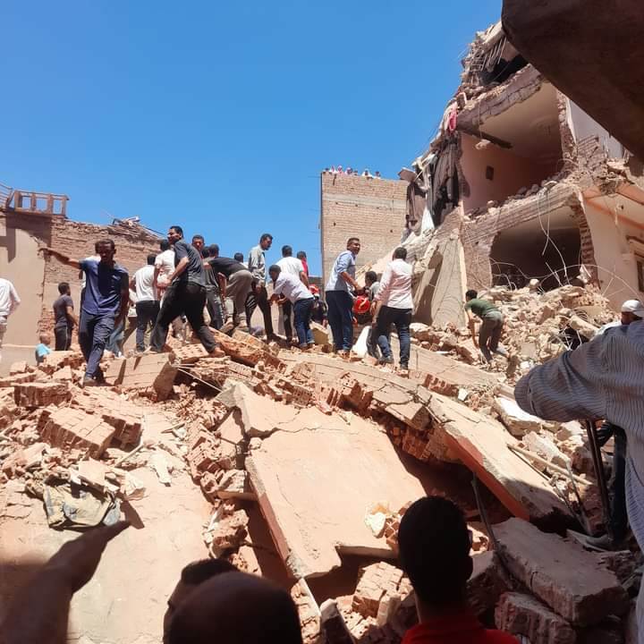 وبالفحص تبين سقوط مبنى مكون من 8 طوابق، وأسفر الحادث عن وفاة محمد.ر.م ١٠ شهور مقيم برشيد أسعد.م.س ٣٨ سنة مقيم برشيد، و إصابة كل من: محمد.س.ع ٥ سنوات رشيد اشتباه ما بعد الارتجاج، سالي.ف.ع ٣٠ سنة رشيد اضطراب بدرجة الوعي، محمد.س.م ١١ سنة رشيد كسر بالذراع اليسرى، سعيدة.ح.ح ٦٧ سنة رشيد اشتباه ما بعد الارتجاج، شيماء.ع.ف ١٨ سنة رشيد كدمات وسحجات بالجسم، محمد.م.ر ١٦ سنة رشيد جروح متفرقة بالجسم، إبراهيم.م.ا ٣٠ سنة رشيد اشتباه كسر بالقدم اليسرى، أحمد.م.س ١٦ سنة رشيد اشتباه كسر بالقدم اليسرى، عبد الرحمن.م.س ١٥ سنة رشيد اشتباه كسر بالذراع اليمنى.