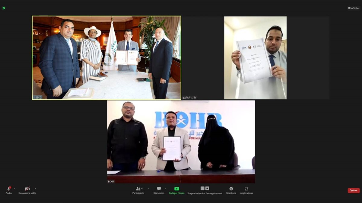 وقع الاتفاقية، اليوم الأربعاء 19 يوليو 2023 عبر تقنية الاتصال المرئي، الدكتور سالم بن محمد المالك، المدير العام للإيسيسكو، والدكتور طارق سالم العكبري، وزير التربية والتعليم في الجمهورية اليمنية، والمهندس فهمي سالمين سالم، المدير التنفيذي لمؤسسة ائتلاف الخير للإغاثة الإنسانية.