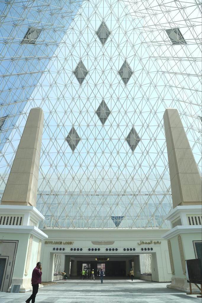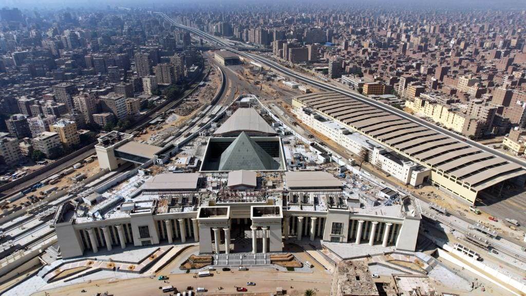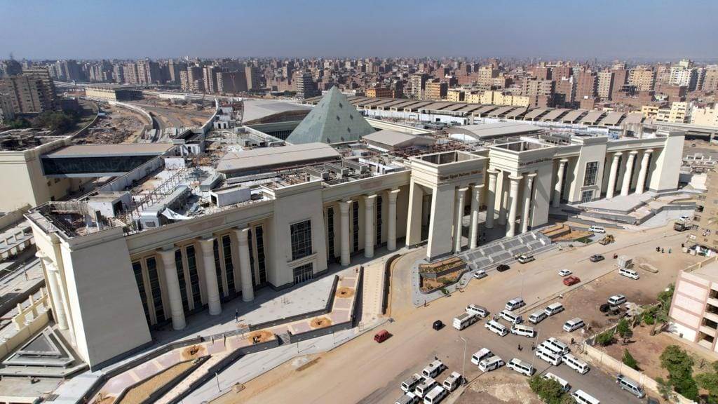حيث بدأت الجولة بمتابعة جاهزية مبني المحطة الرئيسي المقام علي مساحة 31.000 م2 والذي يتكون من دور بدروم سيستخدم كجراج بسعة 250 عربة ودور أرضى يحتوى علي جزء تجاري ضمن مول تجاري متكامل بالدور (الأول - الثاني) وأماكن إدارية بالدور الارضي خاصة بالعاملين بالمحطه بالإضافة إلي 28 شباك تذاكر، وكذلك دورات المياه ومنطقة الهرم الزجاجي بالبهو الرئيسي للمحطة والذي يبلغ ارتفاعه 40مترا، بالإضافة الى الدورين الاول والثاني للمحطة والذي يشمل محلات تجارية ومناطق استثمارية.