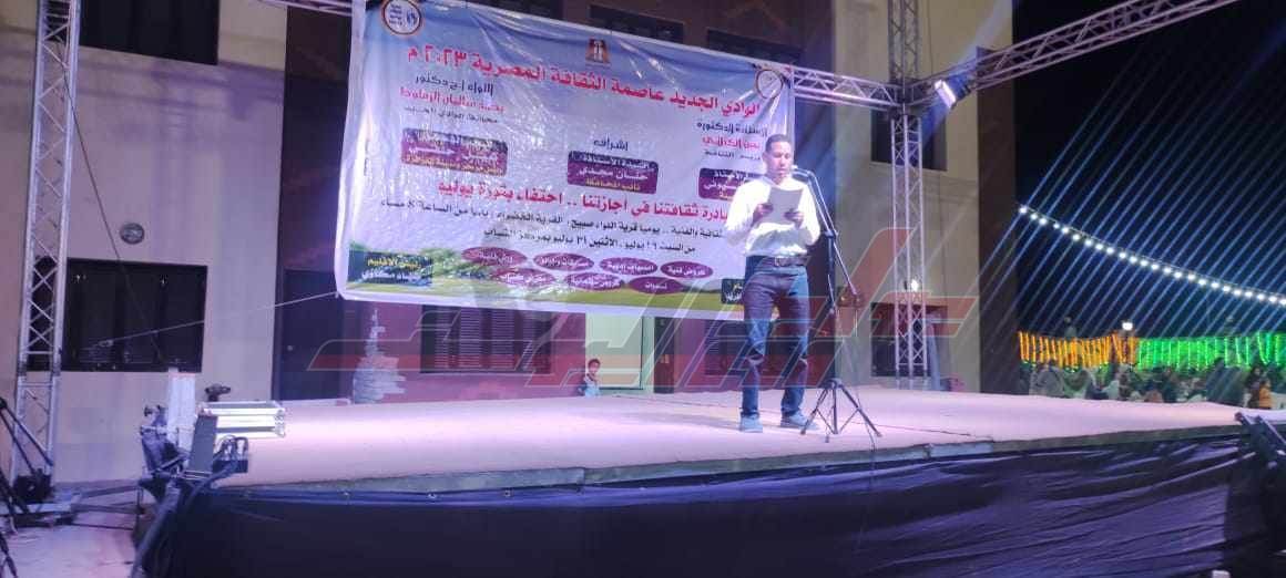 وشملت الاحتفالية عددا من الفقرات الفنية والثقافية بدأت بالسلام الجمهوري، ثم كلمة ابتسام عبدالمريد مدير عام فرع ثقافة الوادي الجديد التي تحدثت عن الأنشطة الثقافية والفنية المقامة بالوادي.