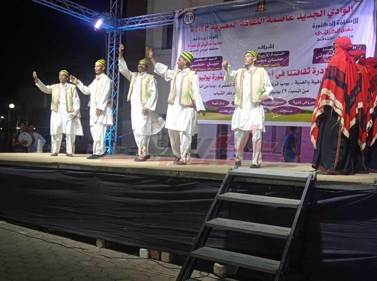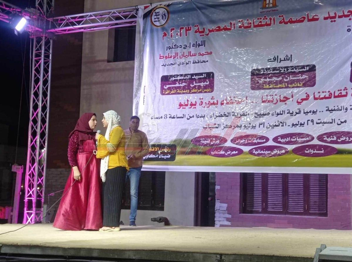 استكمالا لحالة الزخم الثقافي بالوادى الجديد "عاصمة الثقافة المصرية" لعام 2023، وبرعاية الدكتورة نيفين الكيلاني وزير الثقافة، أطلقت الهيئة العامة لقصور الثقافة برئاسة عمرو البسيوني، السبت، احتفالية بعنوان "ليالي الفرافرة الثقافية والفنية"، تزامنا مع احتفالات الهيئة بذكرى ثورة 23 يوليو، وإطلاق فعاليات المبادرة الصيفية "ثقافتنا في إجازتنا".
