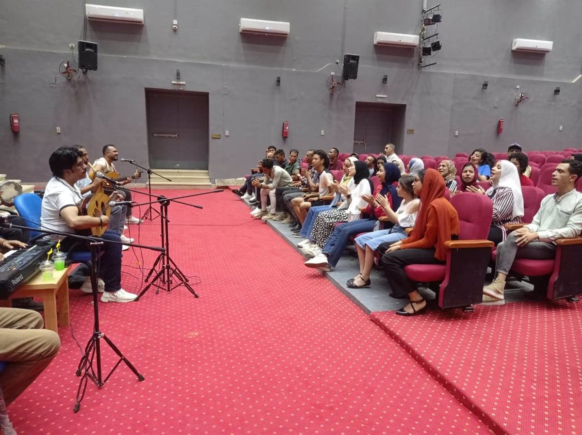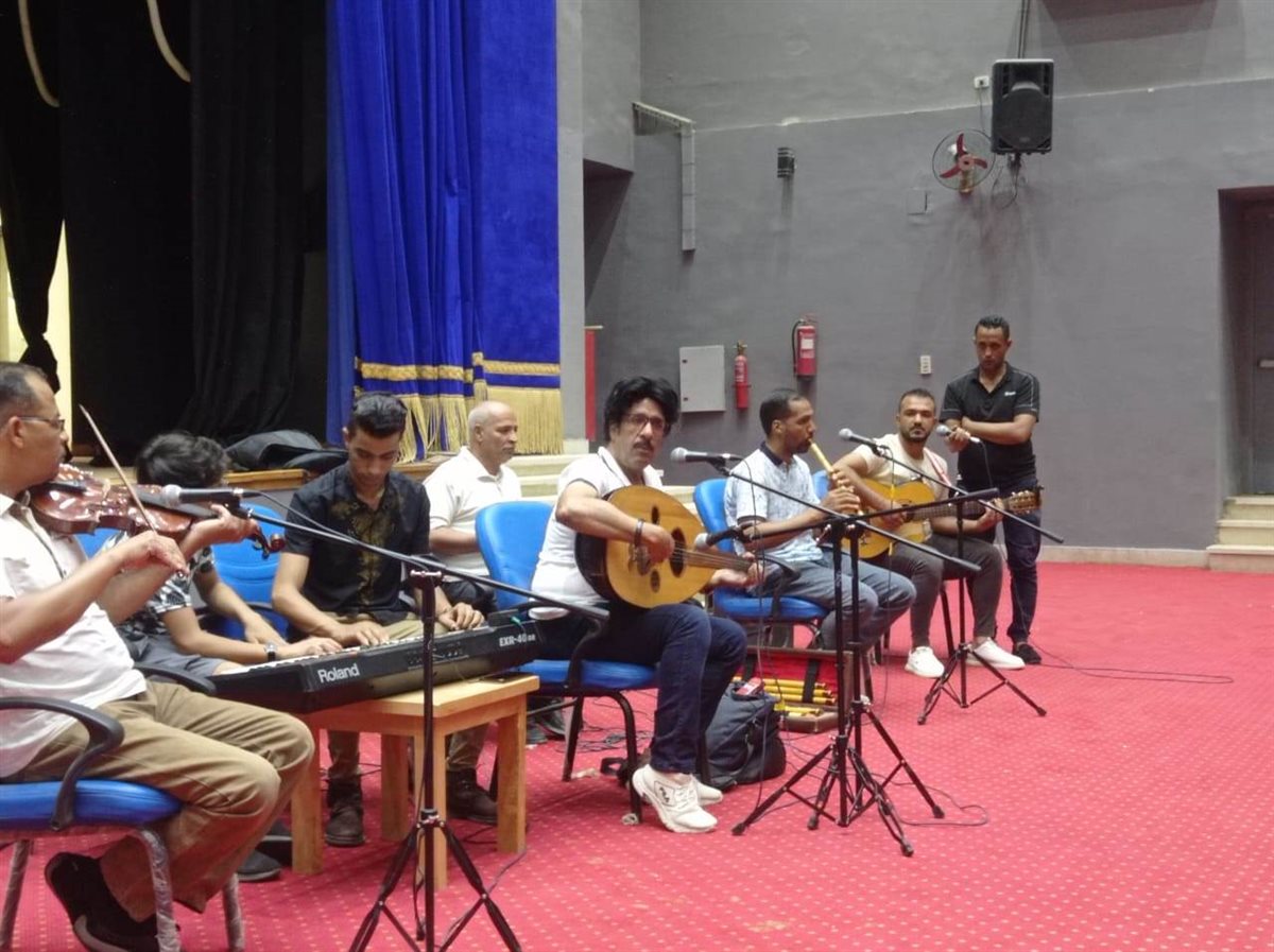 وعلى مسرح سينما هيبس واصل الفنان والمايسترو حسام حسنى تدريباته الموسيقية ومراجعة على مجموعة من الأغاني التي تم التديب عليها ومنها خفيف الروح، الأرض بتتكلم عربي، الأرض لو عطشانة، سيدي يا سيدي، الحلوة لسة صغيرة، سلم سلم، الكوتشينة، حب الوطن.