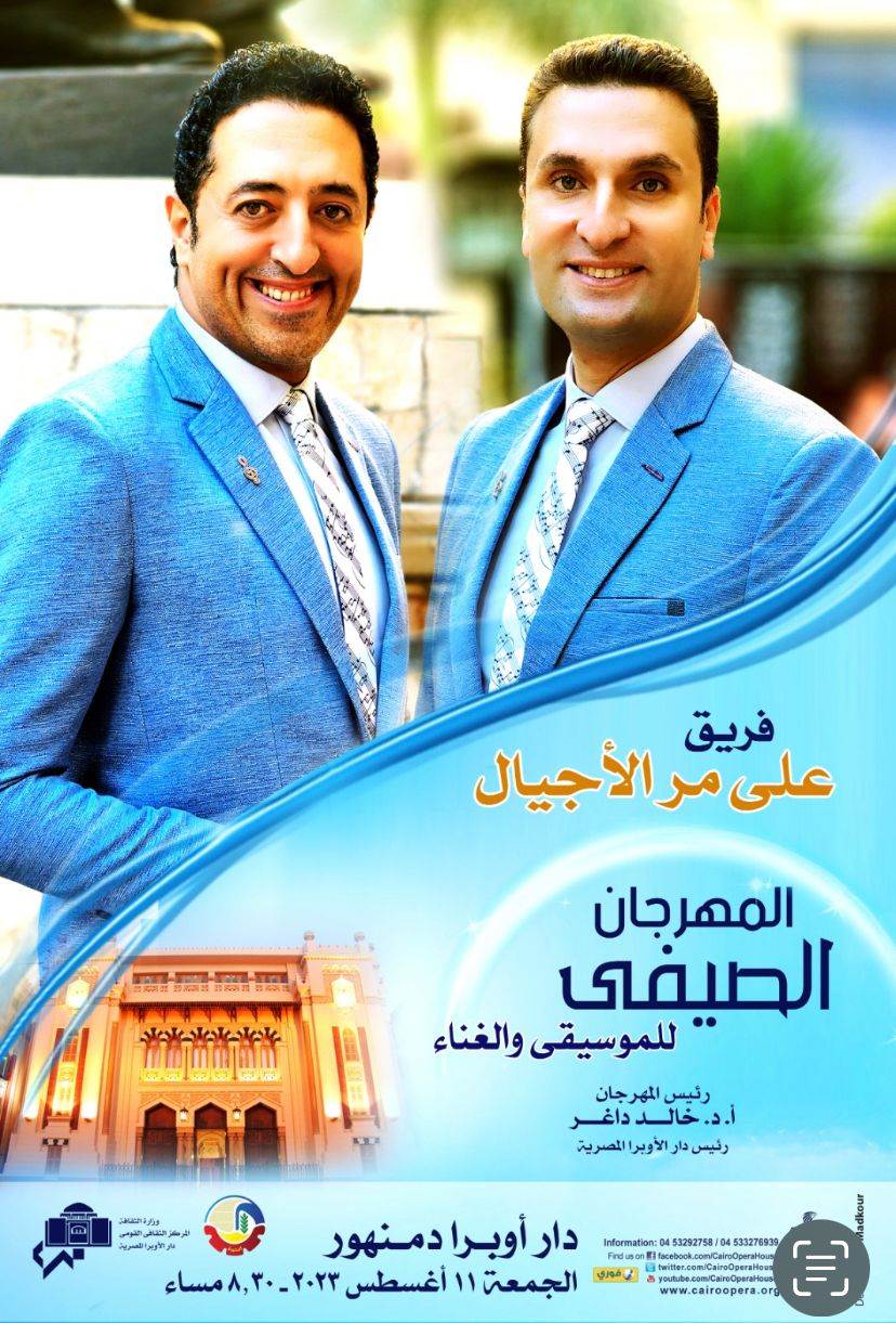 تنطلق فعاليات المهرجان الصيفى للموسيقى والغناء بمحافظة البحيرة والذي تنظمه دار الأوبرا المصرية برئاسة الدكتور خالد داغر بحفل لفريق على مر الأجيال بقيادة المطربين ياسر سعيد ومحمد الخولي يقام في الثامنة والنصف مساء الجمعة 11 أغسطس 2023 بالساحة الخارجية لمسرح أوبرا دمنهور.