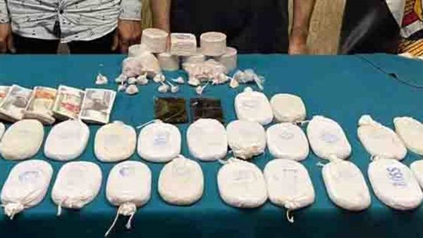 وصبط (شخصين) بدائرة قسم شرطة بدر .. وبحوزتهما كمية من مخدر الحشيش وزنت 2,500 كيلو جرام).