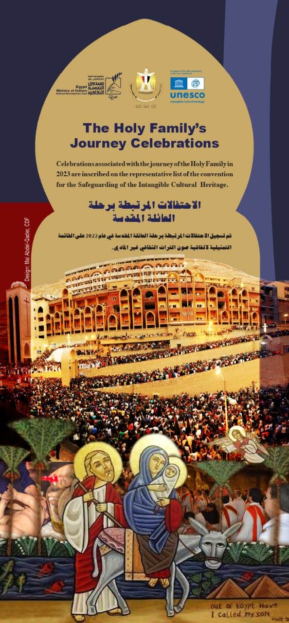 حيث يتضمن البرنامج الاحتفالي: افتتاح معرِض للفنانة الراحلة إكرام عمار "رحلة العائلة المقدسة "، ومعرِض "الخط العربي"، من نتاج مدرسة الفنان خضير البورسعيدي، وعرضًا فنيًا لبعض العناصر المسجلة على قوائم التراث الثقافي غير المادي بمنظمة اليونسكو، ومنها "التحطيب" و"الأراجوز".