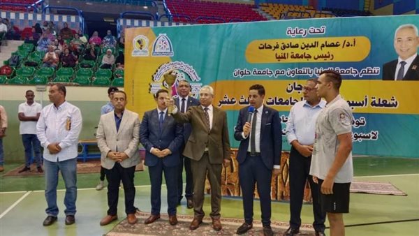 رئيس جامعة المنيا يستقبل شعلة وعلم أسبوع شباب الجامعات الثالث عشر
