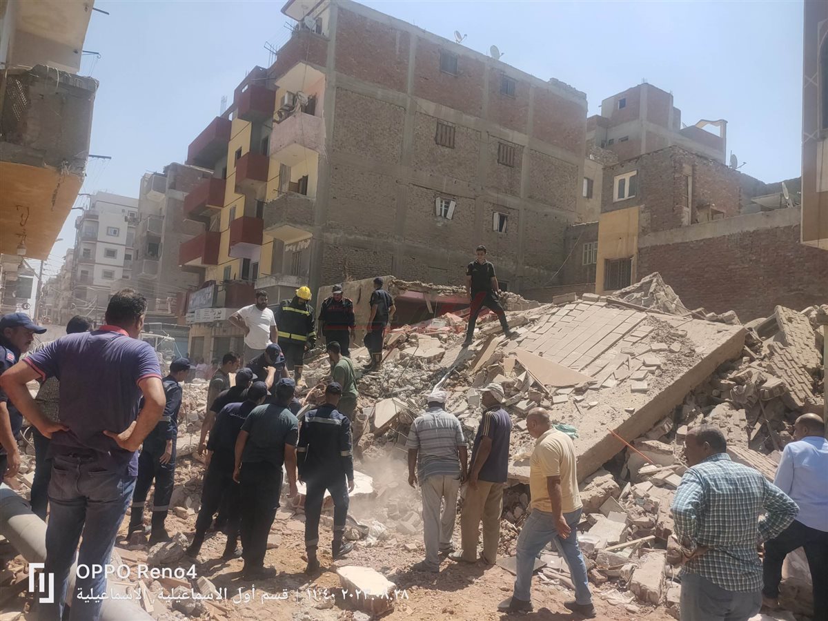 بالصور.. مصرع شخص وإصابة آخر في حادث انهيار عقار بالإسماعيلية