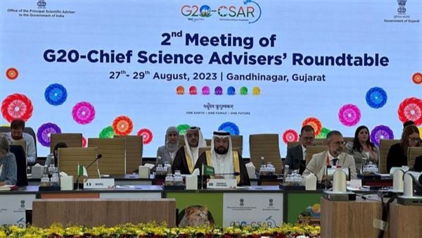 رأس رئيس مدينة الملك عبدالعزيز للعلوم والتقنية الدكتور منير بن محمود الدسوقي، اليوم وفد المملكة المُشارك في اجتماع الطاولة المُستديرة لكبار مُستشاري العلوم في دول مجموعة العشرين المُنعقد في جمهورية الهند.