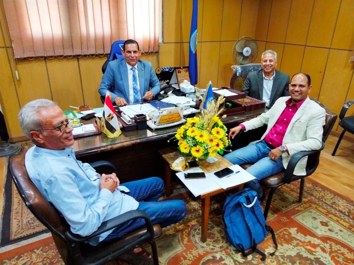في إطار تنفيذ مشروع تطوير الزراعة الذكية مناخيا والتنوع البيولوجي الزراعي لدعم القدرة التكيفية للمجتمعات الريفية الأكثر تأثرا بالمتغيرات المناخية في الأرض القديمة والجديدة بدلتا النيل وصعيد مصر ، والممول من الحكومة الكندية والمنفذ بواسطة منظمة الأغذية والزراعة ـ الفاو مصر، وتنفيذا لتوجيهات السيد القصير وزير الزراعة واستصلاح الاراضى ، استقبل المهندس موفق محمود سارى وكيل وزارة الزراعة بالبحيرة ، فريق عمل المشروع .