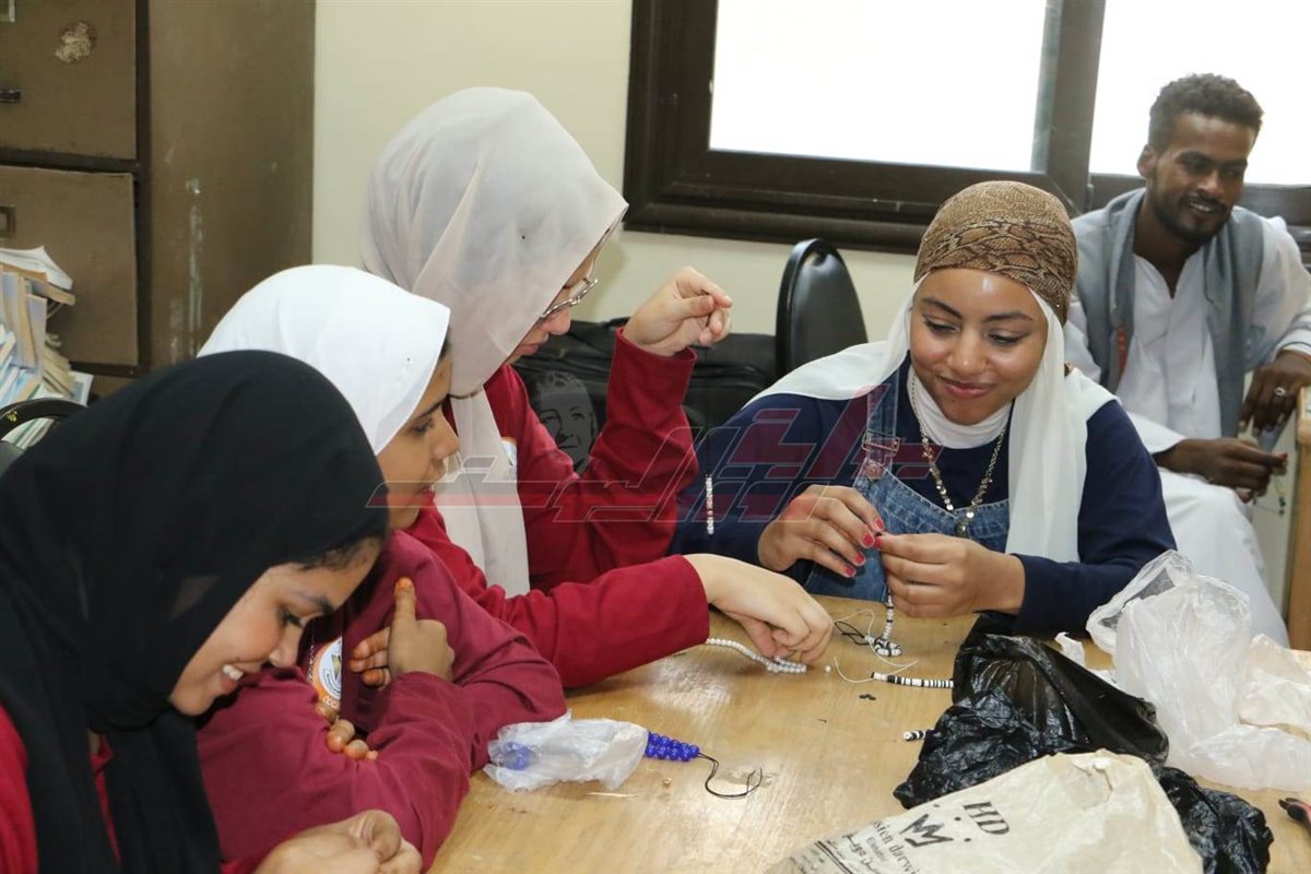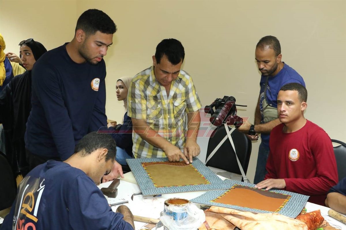 ومن داخل قصر ثقافة العريش الذي يشهد مجموعة متميزة من الورش الفنية والحرفية المتنوعة يوميا، كانت هناك عدة لقاءات مع المدربين، يقول "د. ماجد حماد" وكيل كلية التربية النوعية، ومدرب ورشة الجلود إن الهدف من الورشة التعريف بأنواع الجلود، وطرق تشكيلها لتنفيذ مشغولات فنية سواء بالجلد الطبيعي أو الصناعي وكذلك مراحل تصنيعه المتمثلة في الحرق، التفريغ، التلوين، والتضفير، مضيفاً أنه بالفعل تم تنفيذ عدة مشغولات يدوية كالحقائب، الأحذية والبورتريهات ذات المنظر الجمالي.