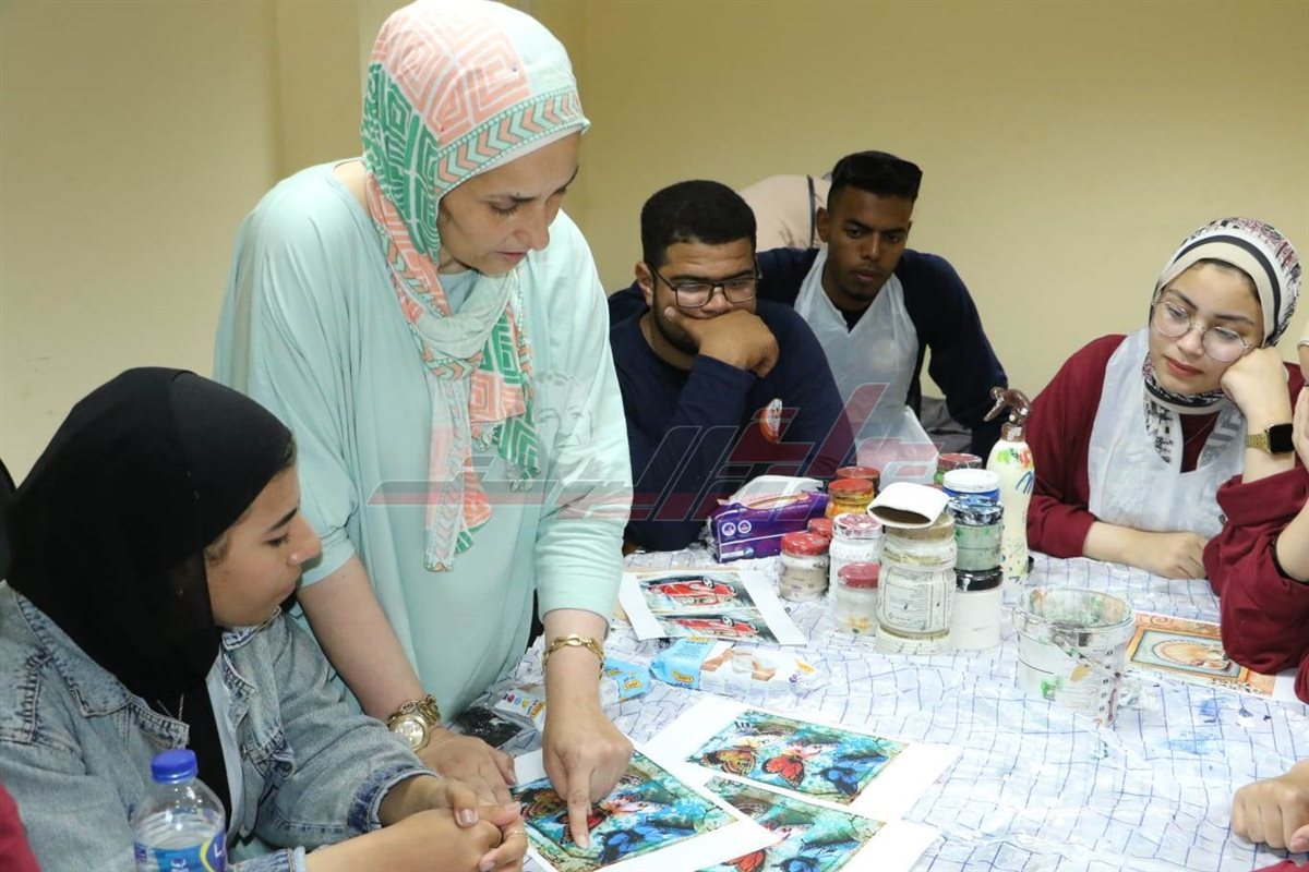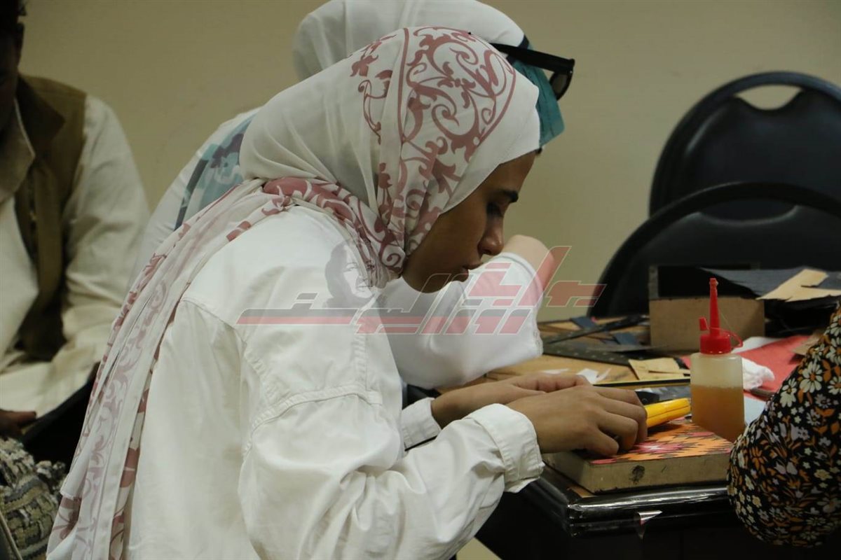 وتحدثت "شموع غريب" إحدى المتدربات بالورشة قائلة إنها من أكثر الورش الممتعة، وتعرفت خلالها على أنواع الجلود، والغرز المستخدمة في تصميمها، معربة عن سعادتها كثيرا بعد تنفيذها لحافظة نقود وعدد من التابلوهات.