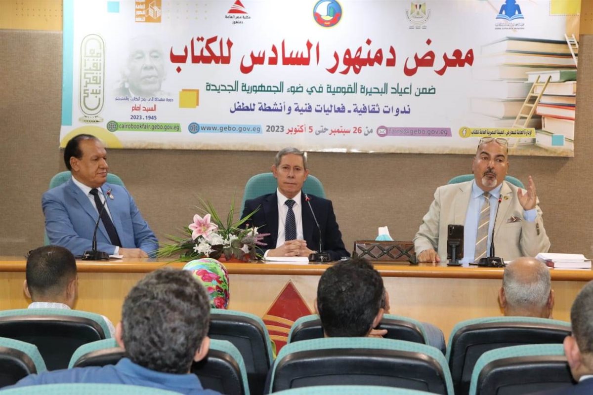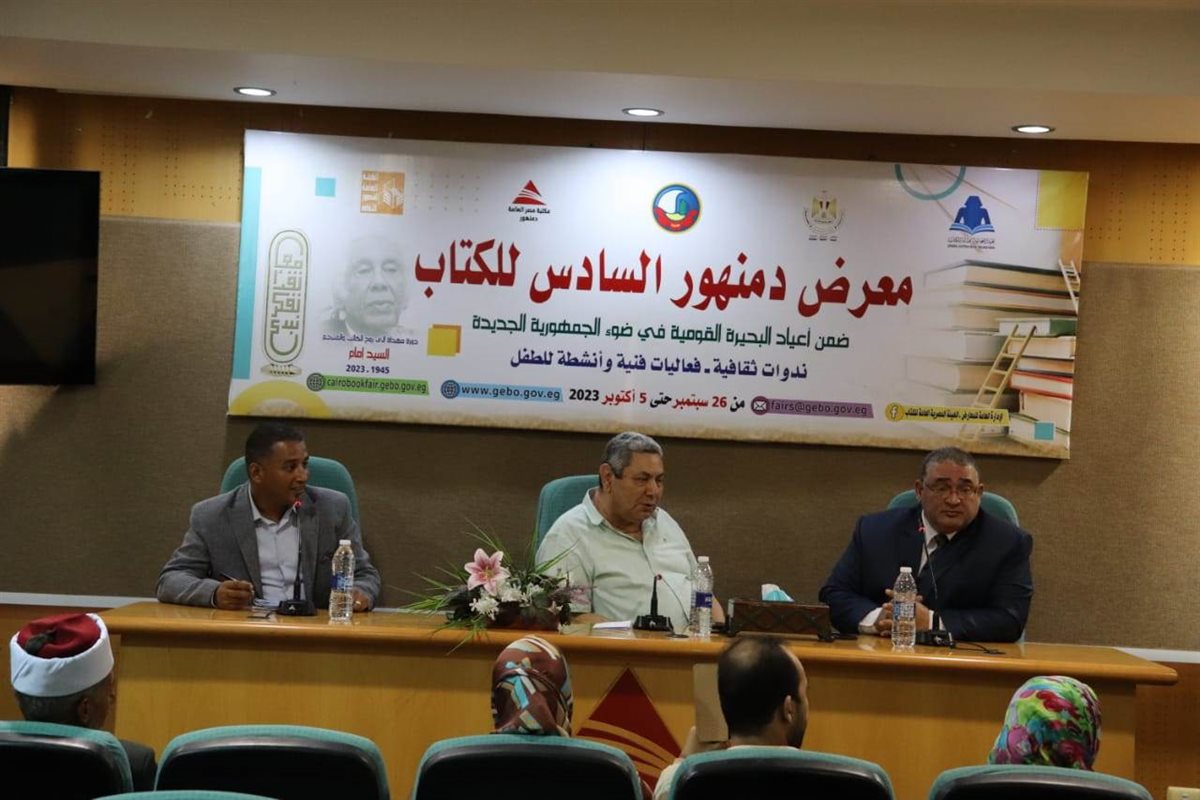 يواصل معرض دمنهور للكتاب في دورته السادسة فعالياته لليوم الرابع على التوالي؛ حيث عقدت عدة ندوات منها ندوة الوحدة الوطنية وترسيخ دعائم الدولة بمشاركة الدكتور بشارة عبدالملك والدكتور طارق أبوالسعد، الباحث السياسي، وأدارها محمد عاشور، وكذا ندوة لمناقشة كتاب المستشار بهاء الدين المرّى بعنوان "القتل باسم الوطن والدين بمشاركة الدكتور فضل الله إسماعيل أستاذ فلسفة السياسة وعميد كلية الآداب الأسبق، وأدار الندوة الدكتور محمد أبوعلي، بالاضافة إلى اللقاء الفكري للنائب الدكتور عيد بلبع، أستاذ النقد والبلاغة وعضو مجلس الشيوخ بمشاركة الدكتور محمود عسران.