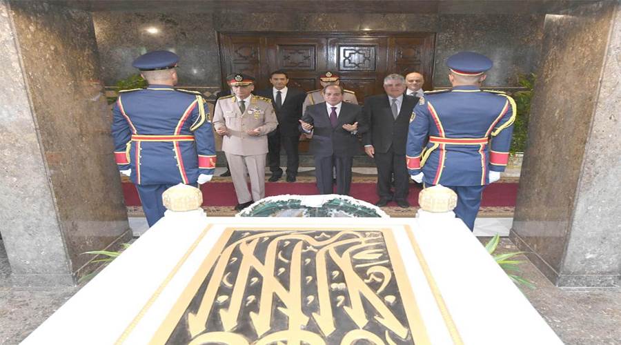 ثم توجه الرئيس السيسي إلى قبر الزعيم الراحل جمال عبد الناصر بكوبري القبة ومصافحة عدد من أفراد أسرته، وقام بوضع إكليل من الزهور وقراءة الفاتحة ترحما على روحه الطاهرة