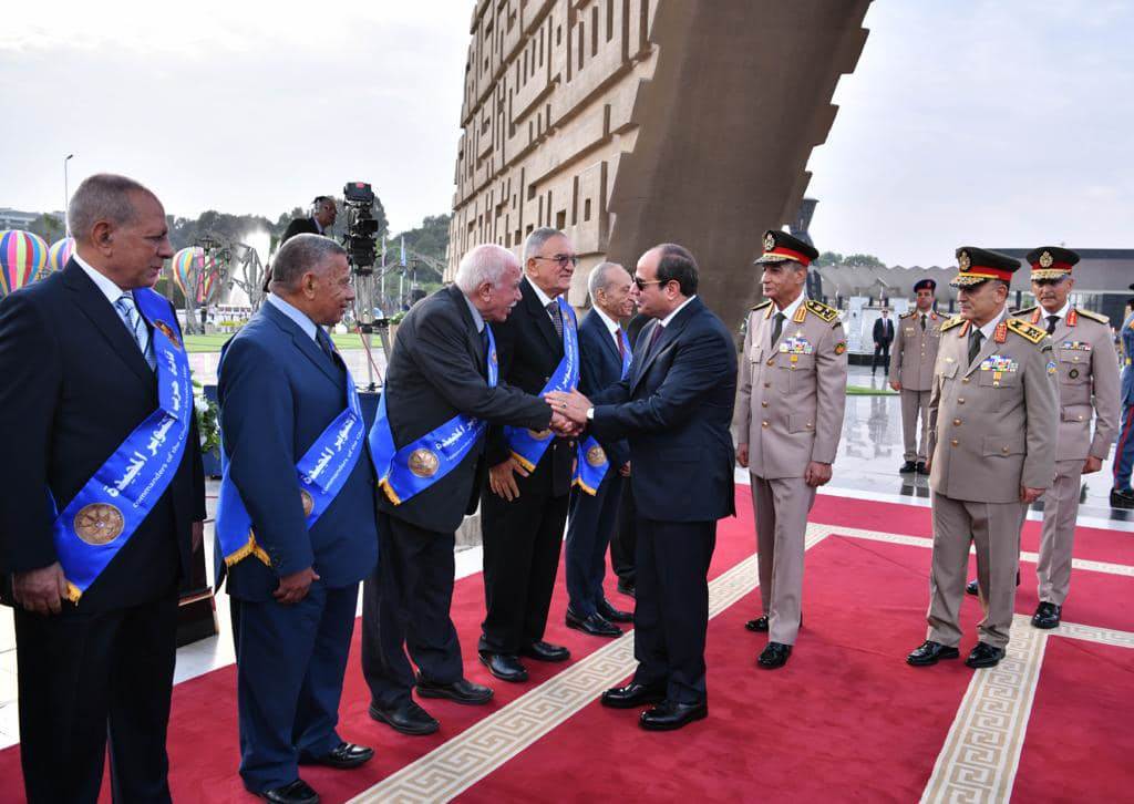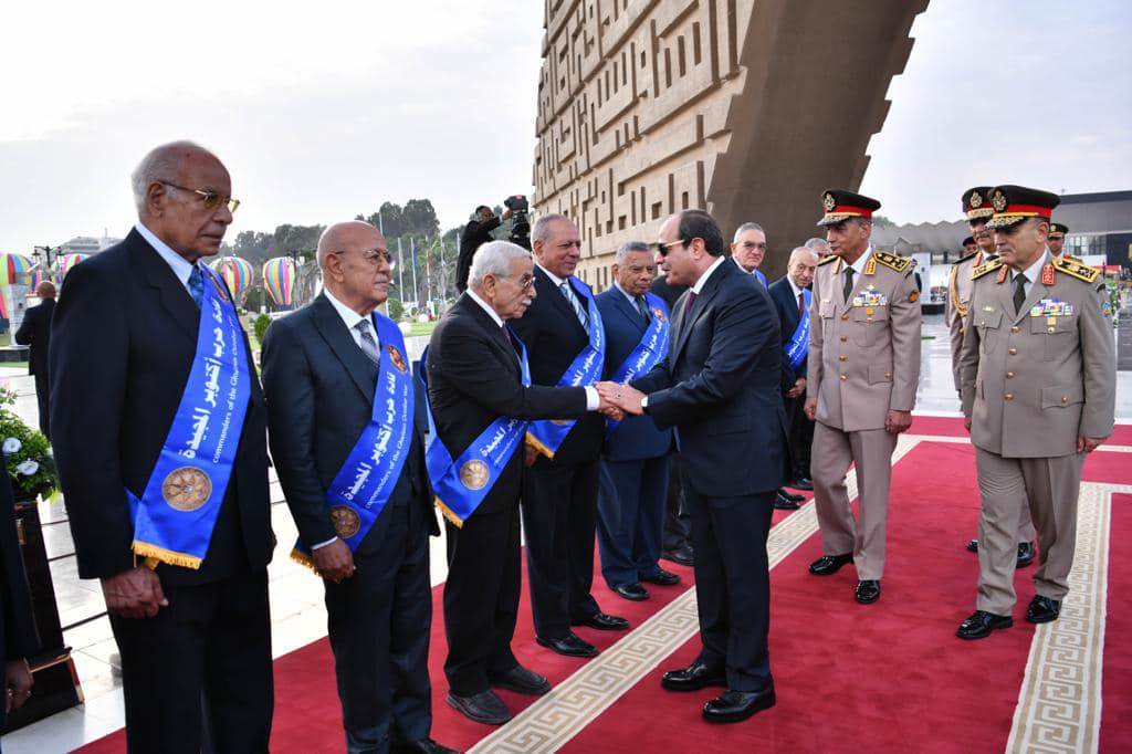 كما صافح الرئيس السيسي عددا من كبار رجال الدولة وقادة القوات المسلحة، وقدامى قادة حرب أكتوبر المجيدة.