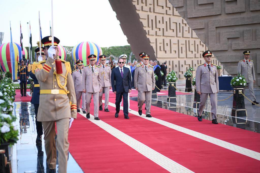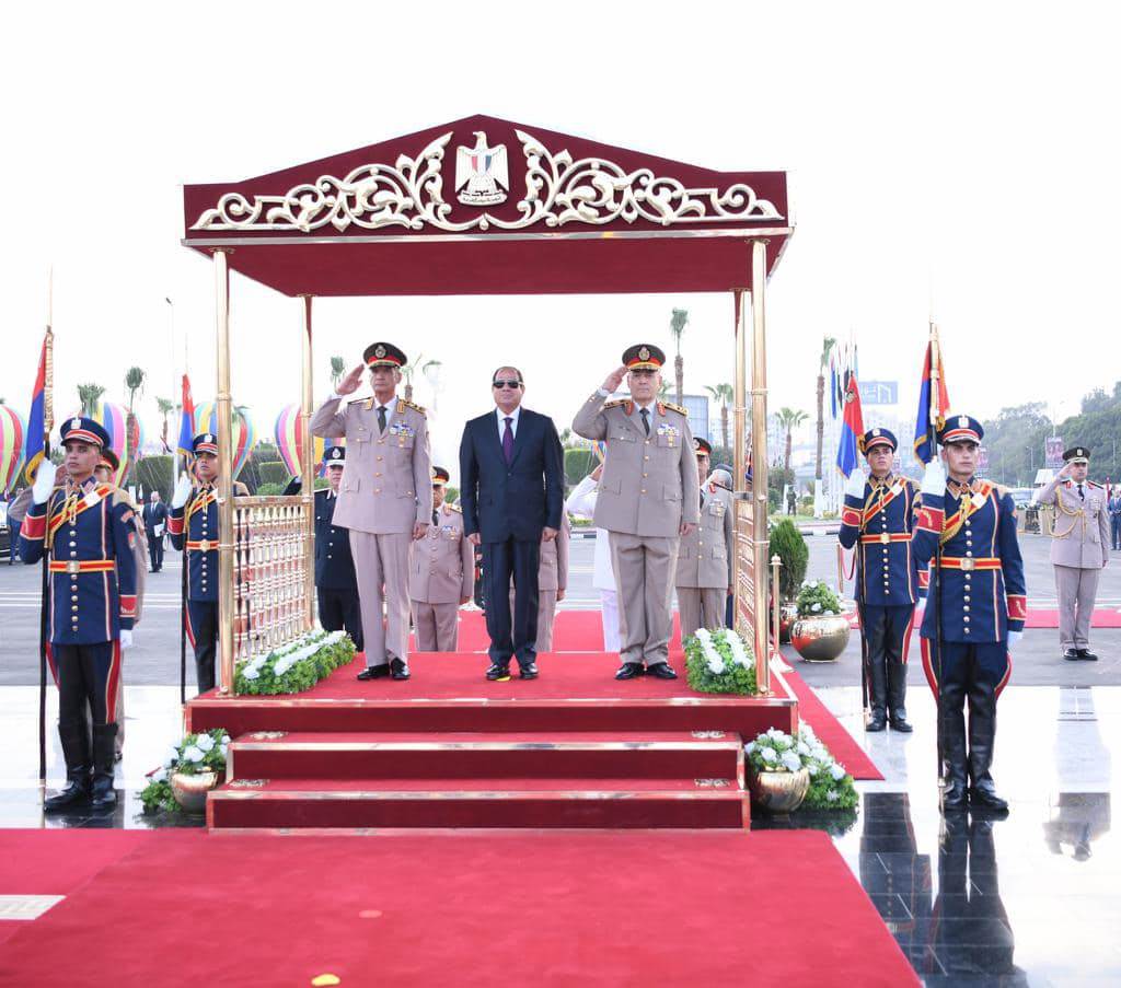 ورافق الرئيس السيسي، القائد العام للقوات المسلحة وزير الدفاع والإنتاج الحربي الفريق أول محمد زكي، ورئيس أركان حرب القوات المسلحة الفريق أسامة عسكر .