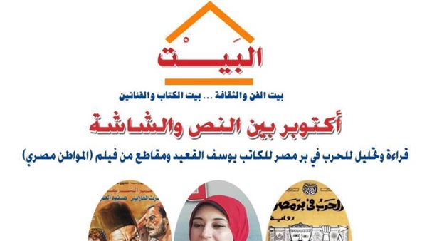 فى اطار احتفالات وزارة الثقافة باليوبيل الذهبي لنصر أكتوبر المجيد، يستضيف مركز جمال عبدالناصر الثقافي بالإسكندرية التابع لقطاع صندوق التنمية الثقافية في السادسة والنصف مساء الخميس 5 أكتوبر أمسية بعنوان "أكتوبر بين النص والشاشة" ضمن لقاءات "البيت" الشهري.