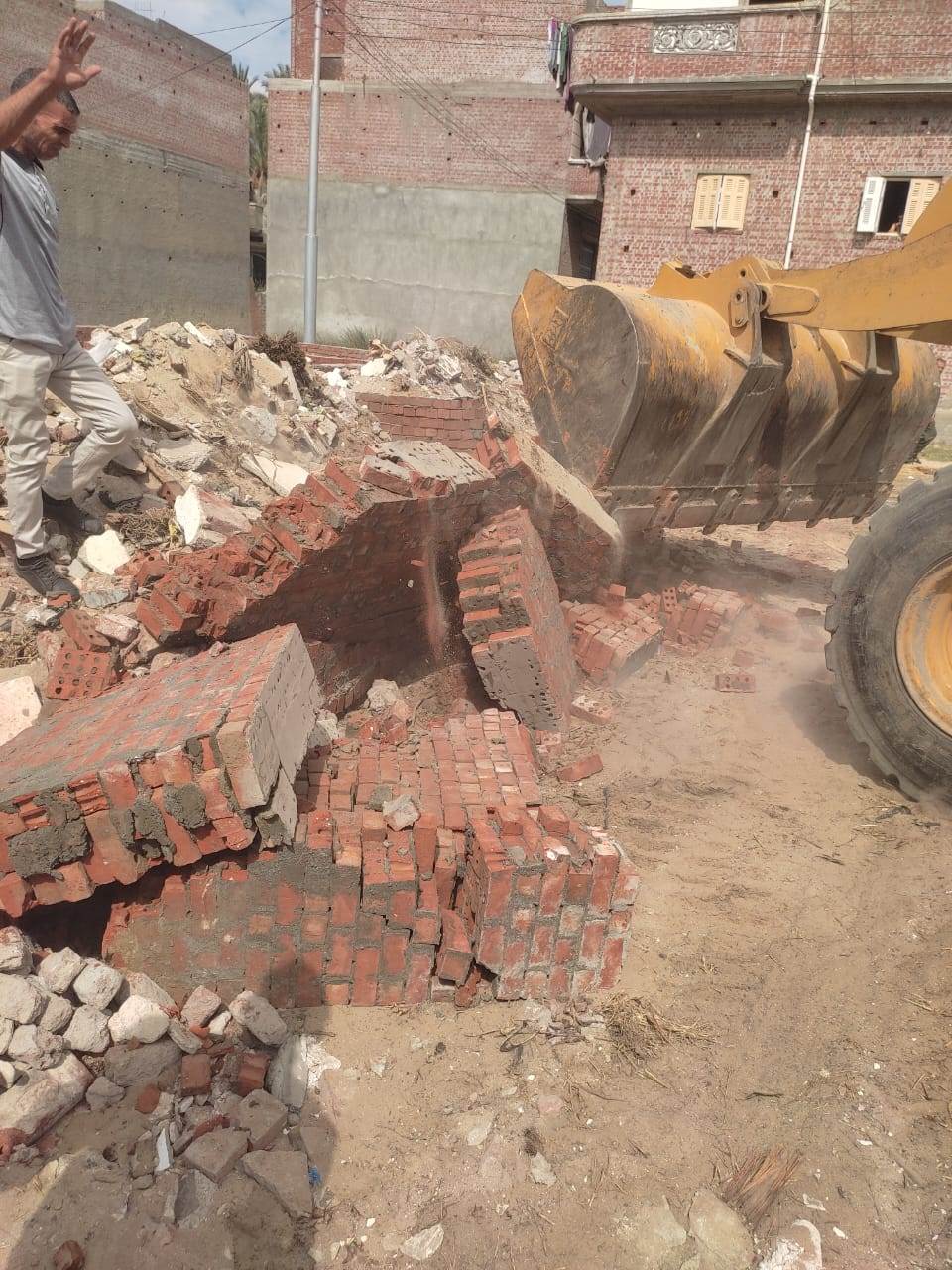 كما تم إزالة حالتي تعدٍ بمساحة 200 م2 عبارة عن أسوار ومباني بالطوب الأبيض والأسمنت خارج الحيز العمراني بنطاق قريتي صفط الحرية والنبيرة بإيتاي البارود.