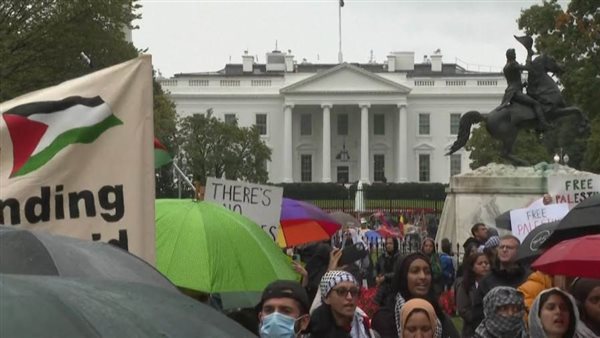 تظاهر المئات من الأمريكيين في واشنطن، احتجاجًا على سياسات الإبادة الجماعية التي يقوم بها الاحتلال ضد الفلسطينيين في قطاع غزة.
