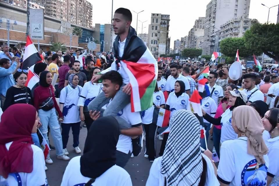 وشدد المتظاهرون على دعمهم الكامل لما تتخذه القيادة المصرية من قرارات لحماية الأمن القومي المصري، ورفض مخطط التهجير إلى سيناء، ودعم صمود الشعب الفلسطيني على أرضه ووقف العدوان الاسرائيلي وتوفير ممرات آمنة للدعم بالمساعدات الغذائية والعلاجية.