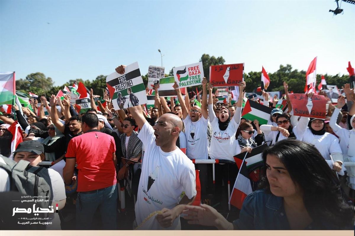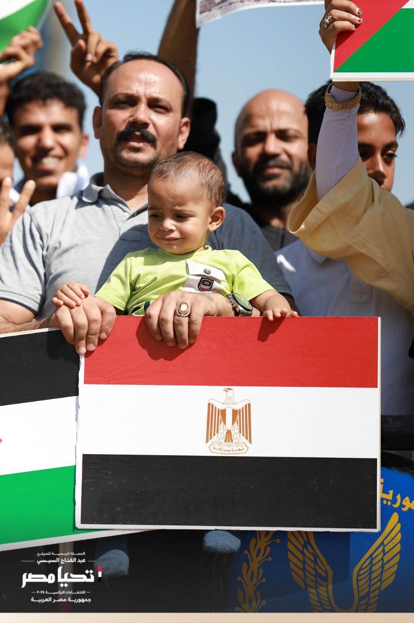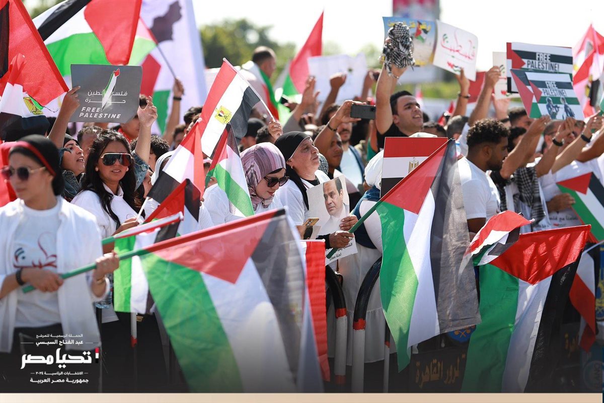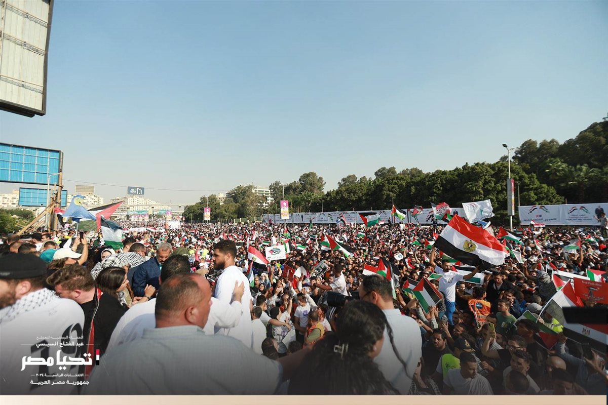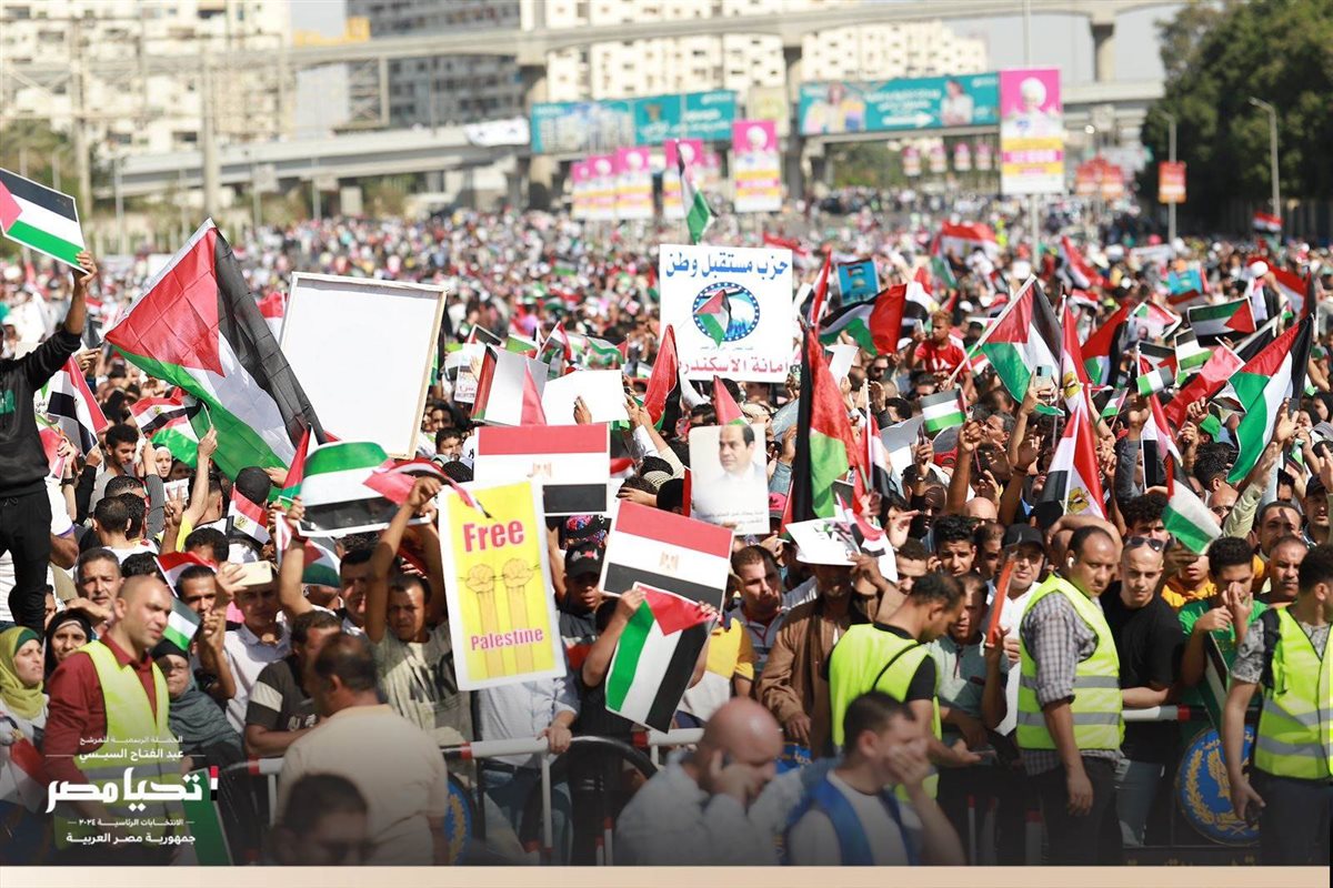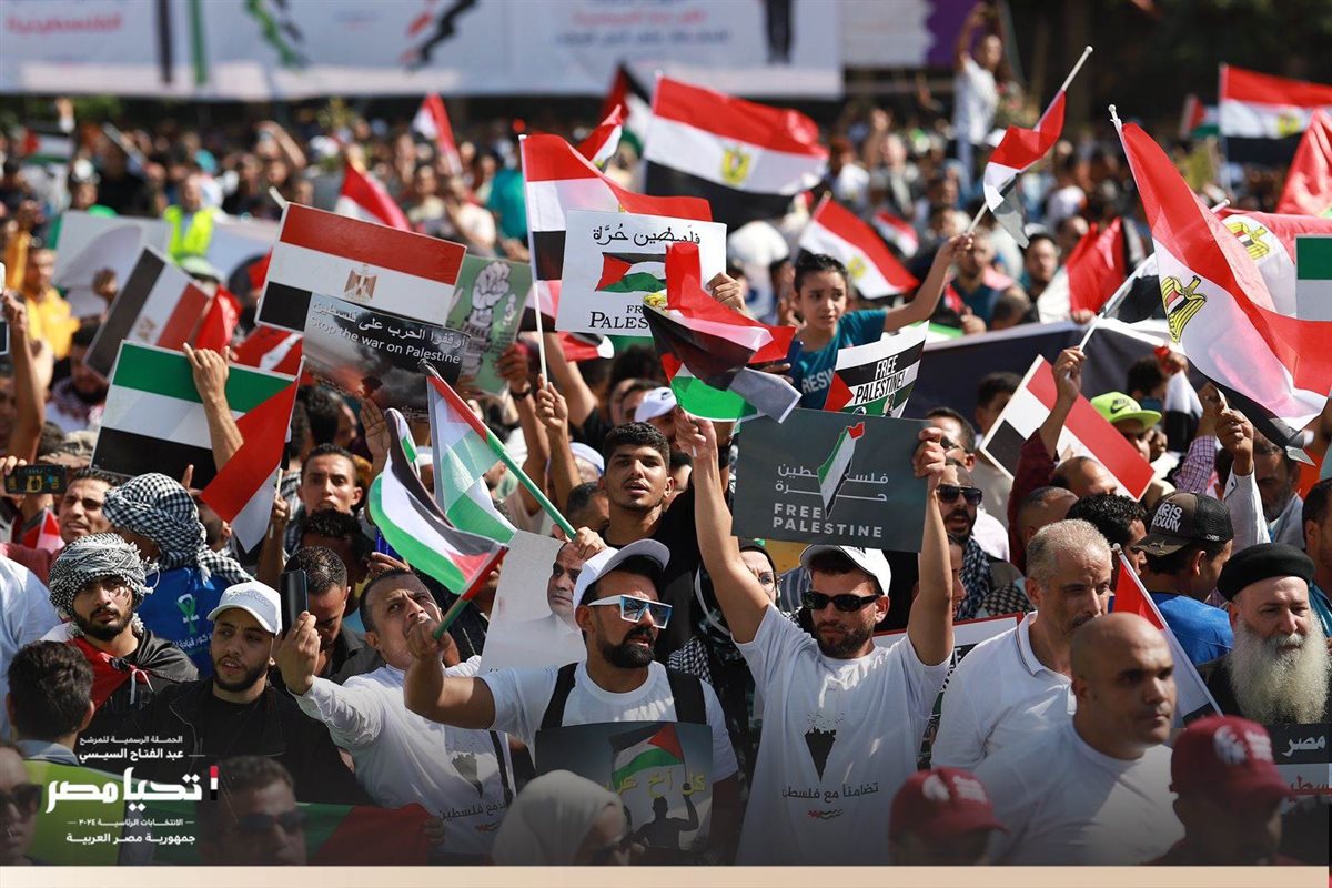 جاء ذلك بمشاركة كل أطياف الشعب المصري صفاً واحداً لدعم وتأييد القيادة السياسية المصرية والرئيس عبد الفتاح السيسي، التي تهدف في المقام الأول إلى الحفاظ على الأمن والسلام بالمنطقة، وحفاظاً على الحقوق المشروعة لشعب فلسطين الشقيق.