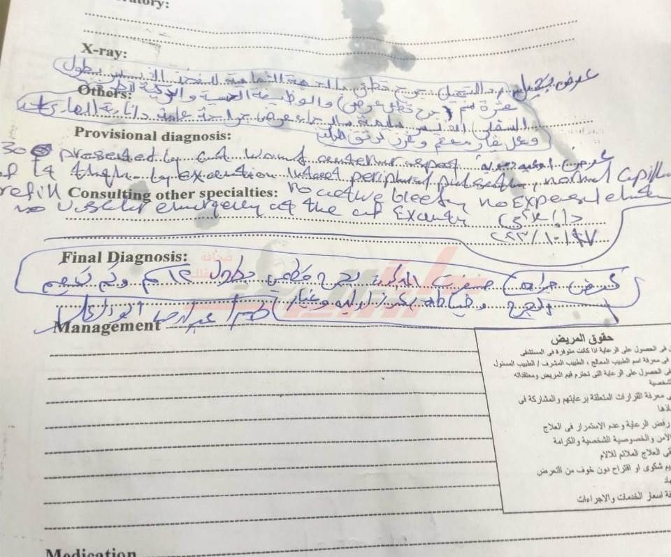 وأضاف ولى أمر الطالب أنه حدثت مشادة بينهم تطورت لمشاجرة، قام المدرس بالتعدى على زوجته "والدة الطفل" والتسبب فى إصابتها بجرح قطعى فى القدم طولة 12 سم وخياطة 40 غرزة داخلية وخارجية .