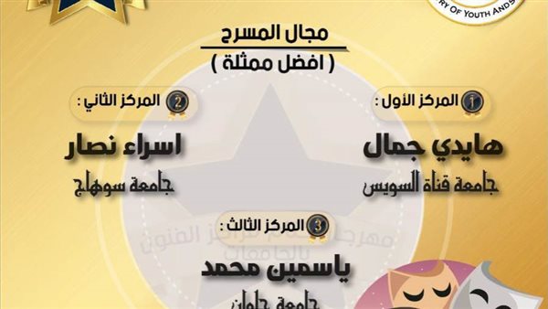 جامعة سوهاج تحصد المركز الثاني لأفضل ممثلة بمهرجان مراكز الفنون بموسمه الرابع