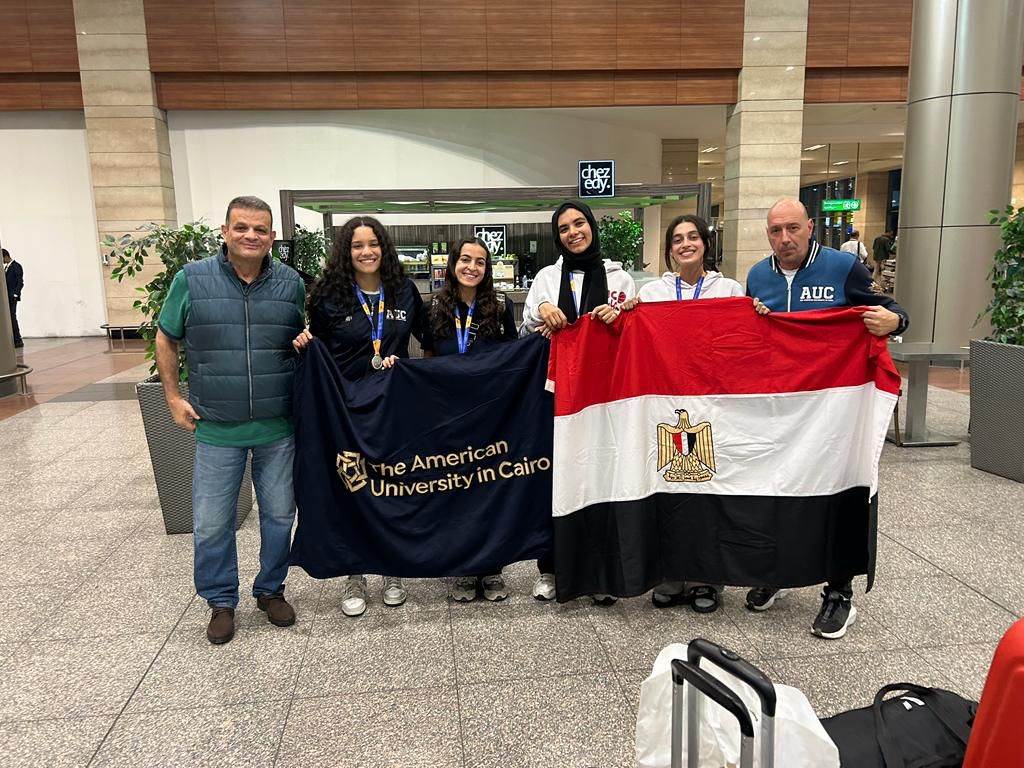 وعادت بعثة الجامعة الأمريكية الأمريكية اليوم بعد تحقيق هذا الإنجاز وكان في استقبالها المهندس شريف العريان المدير الرياضي للجامعة والأمين العام للجنة الأولمبية المصرية الذي وجه التهنئة للفريق في وجود يورجن مارسيل عميد الطلبة بالجامعة ورئيس البعثة ومحمد هشام مدرب الفريق.