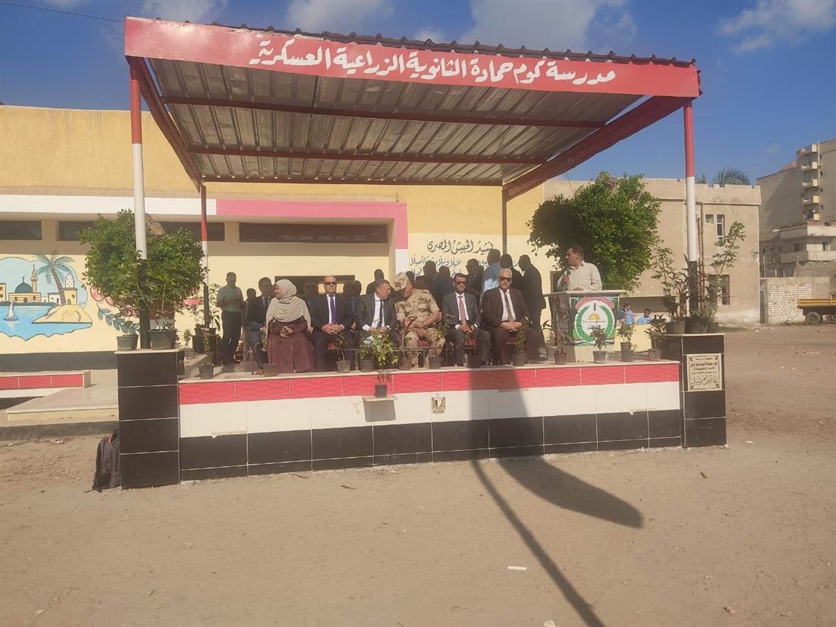 كما قام وكيل الوزارة بزيارة مدرسة كوم حمادة الثانوية الزراعية العسكرية وتابع العرض العسكري للطلاب بفناء المدرسة وأشاد بمستوى الالتزام والانضباط والتدريب لهم، حضر الجولة محمد حامد بهي الدين مدير إدارة كوم حمادة التعليمية.