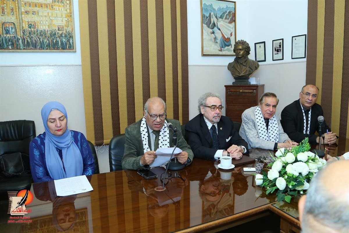 وقد قام بعض أعضاء اتحاد الكتاب بتلاوة البيانات الموجهة إلى الجامعة العربية ومنظمات المجتمع المدني بكل لغات العالم للتنديد بالمجازر الإسرائيلية ضد الشعب الفلسطينى.