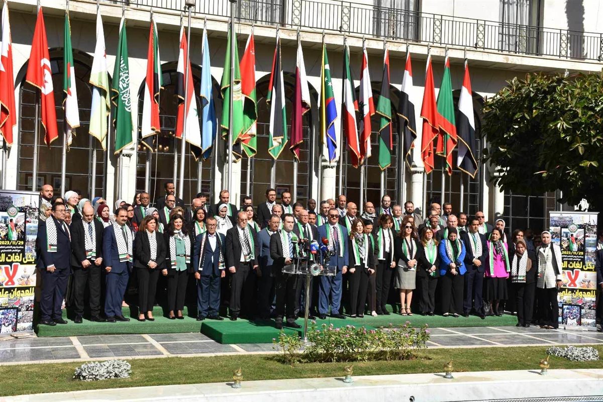 نظمت الأمانة العامة لجامعة الدول العربية وقفة تضامنية، بمناسبة الاحتفال باليوم العالمي للتضامن مع الشعب الفلسطيني واستهلت الوقفة بالنشيد الوطني الفلسطيني.