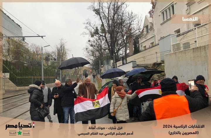 استمرار توافد المصريين في الخارج بالنمسا على مقار الاقتراع والإدلاء بأصواتهم في الانتخابات الرئاسية 2024.